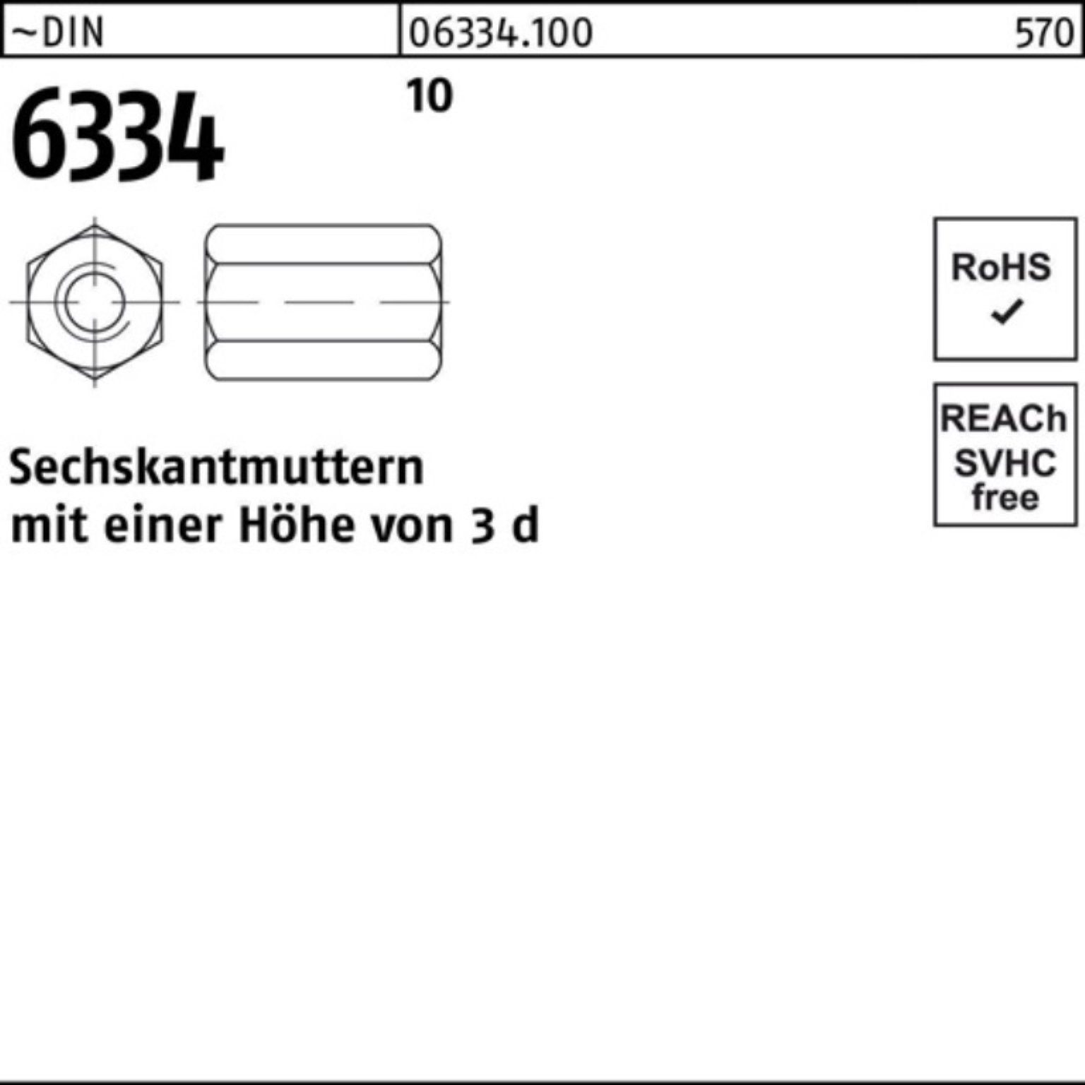Muttern 100er Pack 063341000360000 Sechskantmutter DIN 6334 M 36 SW 55 10