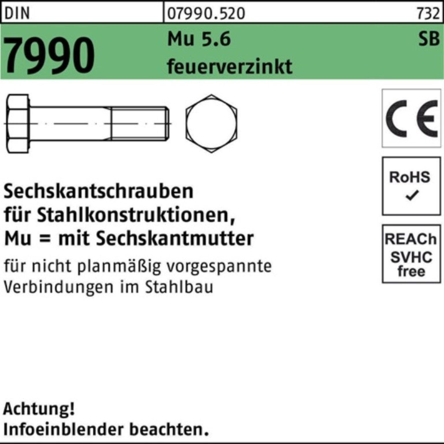 Sechskantmutter 100er Pack 079905200160055 Sechskantschraube DIN 7990 CE m.Sechskantmu
