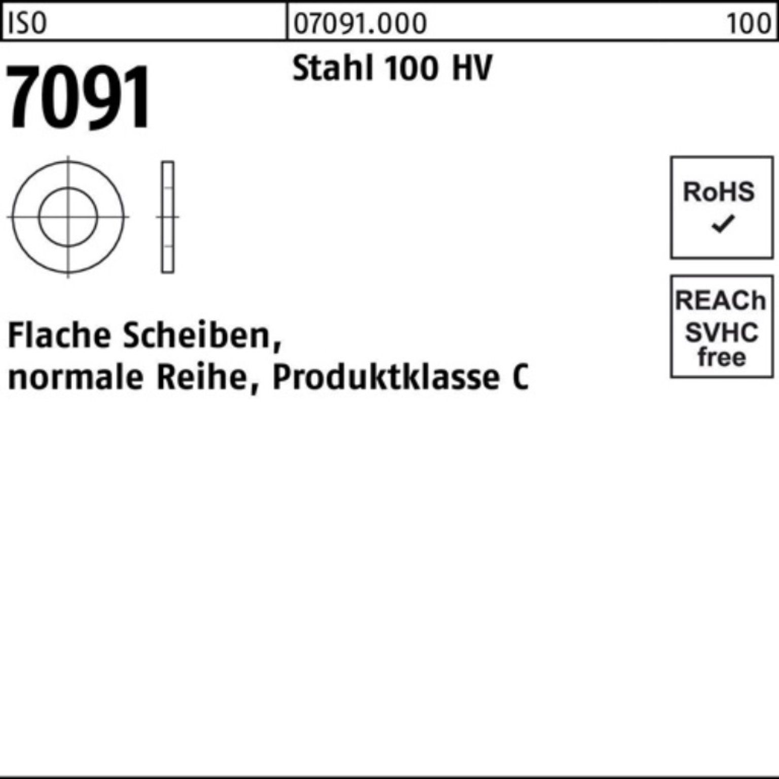 Unterlegscheibe 100er Pack 070910009100000 Unterlegscheibe ISO 7091 10 Stahl 100 HV