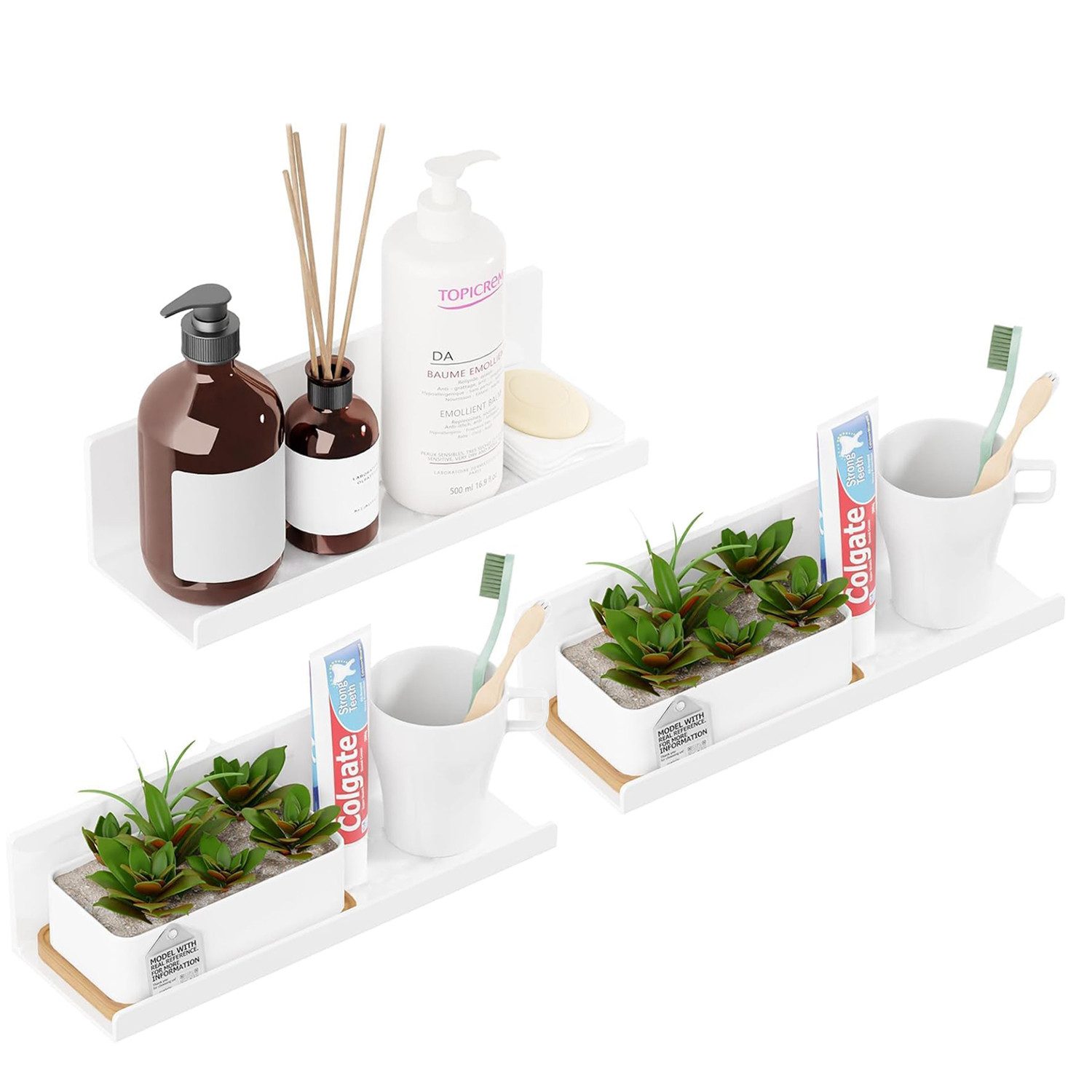 - Hergestellt aus hochwertigem Kunststoff, ist das Regal wasserdicht, rostfrei und verstärkt für hohe Festigkeit und Haltbarkeit. Es eignet sich ideal zur Aufbewahrung von Duschgel, Shampoo, Handseife, Parfüm, Gewürzflaschen, Pflanzen, Dekorationen, Büchern oder Fotos, ohne sich um Rost oder abblätternde Farbe sorgen zu müssen.