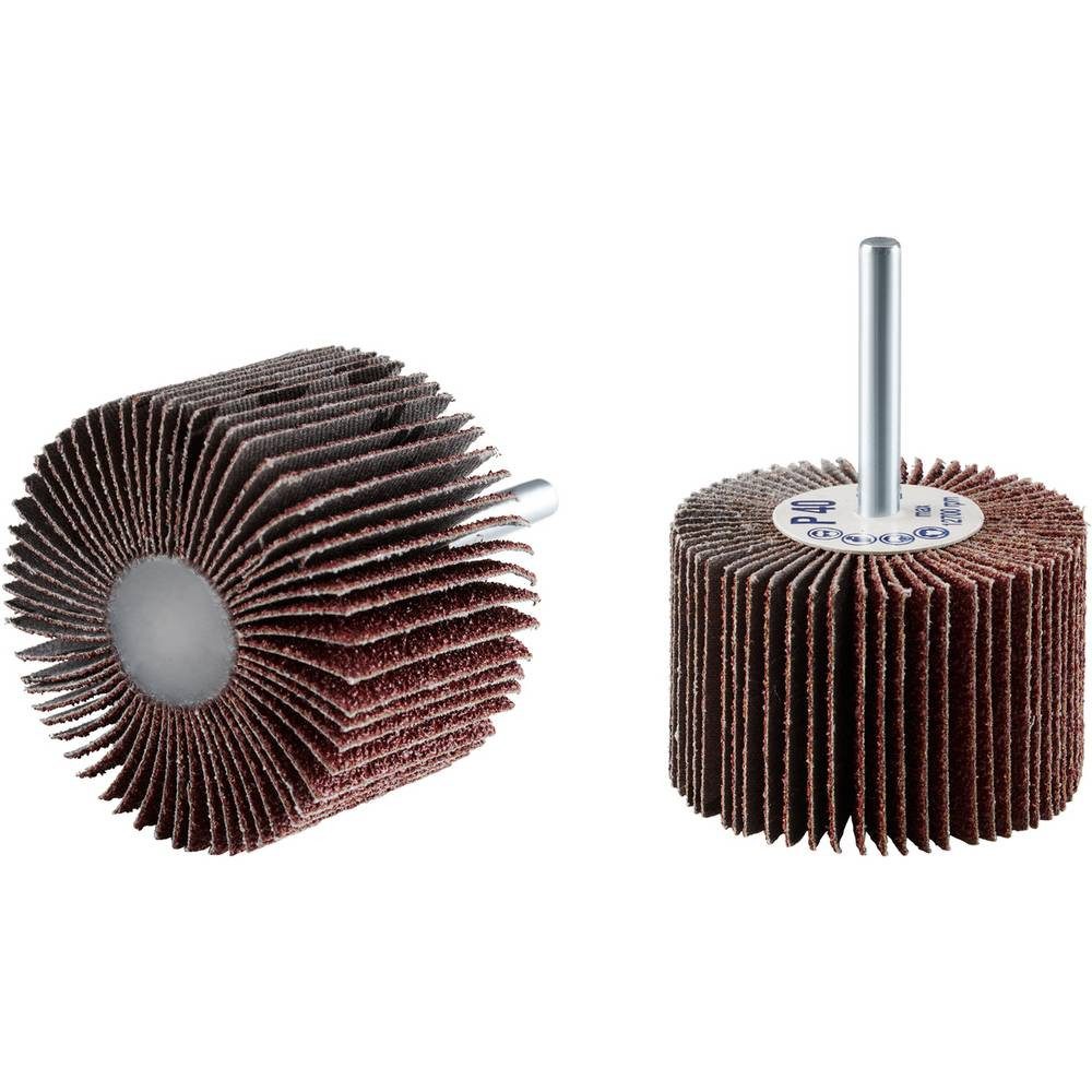 Maschineneignung: Der RHODIUS Lamellenschleifer FS ist für den Einsatz mit einem Geradschleifer bzw. einer Maschine mit Biegwellenantrieb mit 6 mm Schaftaufnahme ausgelegt. Materialeignung: Er wurde speziell für die Bearbeitung von Edelstahl (VA-Stahl, Inox), z.B. 1.4301 (X5CrNi18-10 oder 304) sowie Stahl (Schwarzstahl auch Baustahl, St37, S235JR, 1.0037 oder Karbonstahl genannt) und Stahlguss entwickelt. Auch auf Holz erzielt der Anwender mit dem RHODIUS FS sehr gute Arbeitsergebnisse. Aufbau und Herstellung: Als Korn wird hier leistungsfähiges Aluminiumoxid verwendet. Ein großer Kunstharzkern sorgt zudem für eine sehr hohe Lebensdauer. Dank eines flexiblen x-Gewebes passt sich der Lamellenschleifer dem Werkstück besonders gut an. Qualität: Der Anwender erhält mit dem Lamellenschleifer FS das beste RHODIUS Werkzeug seiner Kategorie. RHODIUS TOPline Produkte stehen für ein Höchstmaß an Leistung und Qualität. Anwendung: Dieses Qualitäts-Werkzeug ist erste Wahl, wenn feine Entgratarbeiten und Vorarbeiten an besonders schwer zugänglichen Stellen durchgeführt werden müssen oder wenn in Ecken bzw. Rundungen sauber und effektiv abgeschliffen werden muss. Die flexiblen Lamellen sorgen hier für eine optimale Anpassung an die Werkstück-Oberfläche. Auch auf rostbeständigem oder säurebeständigem Stahl, auf Hardox und auf hochfestem Blech spielt er seine Stärken voll aus. Abmessung: Dieser Lamellenschleifer für Geradschleifer bzw. für Maschinen mit Biegwellenantrieb ist in Durchmessern von 30 mm bis 80 mm erhältlich. Um immer ein optimales Arbeitsergebnis und Schliffbild zu erzielen, kann der Anwender unter den Körnungen 40, 60, 80, 120 und 150 wählen. Branchen: Er ist das perfekte Werkzeug für die vielfältigen Anwendungen und Herausforderungen in der Kfz-Werkstatt und in der Schlosserei, im Fahrzeugbau, im Anlagenbau oder im Behälterbau..