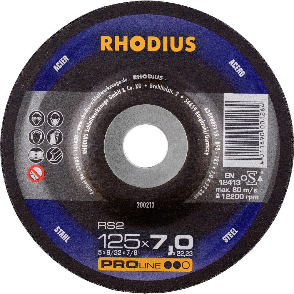Maschineneignung: Die RHODIUS RS2 X-LOCK ist für den Handeinsatz mit dem Winkelschleifer geeignet. Ihre Stärken kann sie auf Maschinen aller Leistungsklassen voll ausspielen. Materialeignung: Die RHODIUS RS2 X-LOCK wurde gezielt für die Bearbeitung von Stahl (Schwarzstahl auch Baustahl, St37, S235JR, 1.0037 oder Karbonstahl genannt) und Stahlguss entwickelt. Die Schruppscheibe RS2 eignet sich hervorragend für das Anfasen, für die Schweißnahtvorbereitung, für das Egalisieren von Schweißnähten sowie um Kanten zu brechen und zum Entgraten. Sie ist darüber hinaus auch für den Flächenschliff geeignet. Aufbau und Herstellung: Die Scheibe wird nach EN 12413 hergestellt und sicherheitsgeprüft und ist oSa-zertifiziert. Jede tausendste Scheibe wird mit annähernd doppelter Einsatzdrehzahl auf Sicherheit getestet. Sie enthält hochwertiges Schleifkorn (Aluminiumoxid auch Korund genannt) und speziell abgestimmtes Phenolharz sowie eine Armierung aus drei vollflächigen Glasfaser-Gewebelagen. Diese Schruppscheibe übertrifft so bei Weitem die gesetzlich geforderte Seitenlast von 290 N. Qualität: Der Anwender erhält mit der RS2X-LOCK ein Werkzeug, das den hohen Qualitätsansprüchen in Industrie und Handwerk gerecht wird. Um noch wirtschaftlicher arbeiten zu können, empfehlen sich RHODIUS Schruppscheiben der Qualitätslinie TOP. Anwendung: Die RS2 X-LOCK überzeugt durch ihre hohe Lebensdauer. Die Scheibe hat dank einer Feinkorndeckschicht ein nur minimales Ausbruchverhalten (gilt nur für die Вариантыn mit den Scheibenbreiten von 6 mm bis 10 mm). Abmessung: Die Schruppscheibe RS2 X-LOCK ist in den Scheibenbreiten von 4,0 mm bis 10,0 mm erhältlich. Die X-LOCK Scheiben von RHODIUS in den Durchmessern 115 mm und 125 mm sind für Winkelschleifer unterschiedlichster Hersteller passend. Все RHODIUS Scheiben für X-LOCK sind zudem rückwärtskompatibel, das heißt: Sie können auch auf einem herkömmlichen Winkelschleifer mit Aufnahme für eine 22,23 Bohrung genutzt werden. Branchen: Diese Schruppscheibe wird bevorzugt in der Schlosserei, im Stahlbau, in Werften, im Behälter- und Anlagenbau sowie im Rohrleitungsbau eingesetzt
