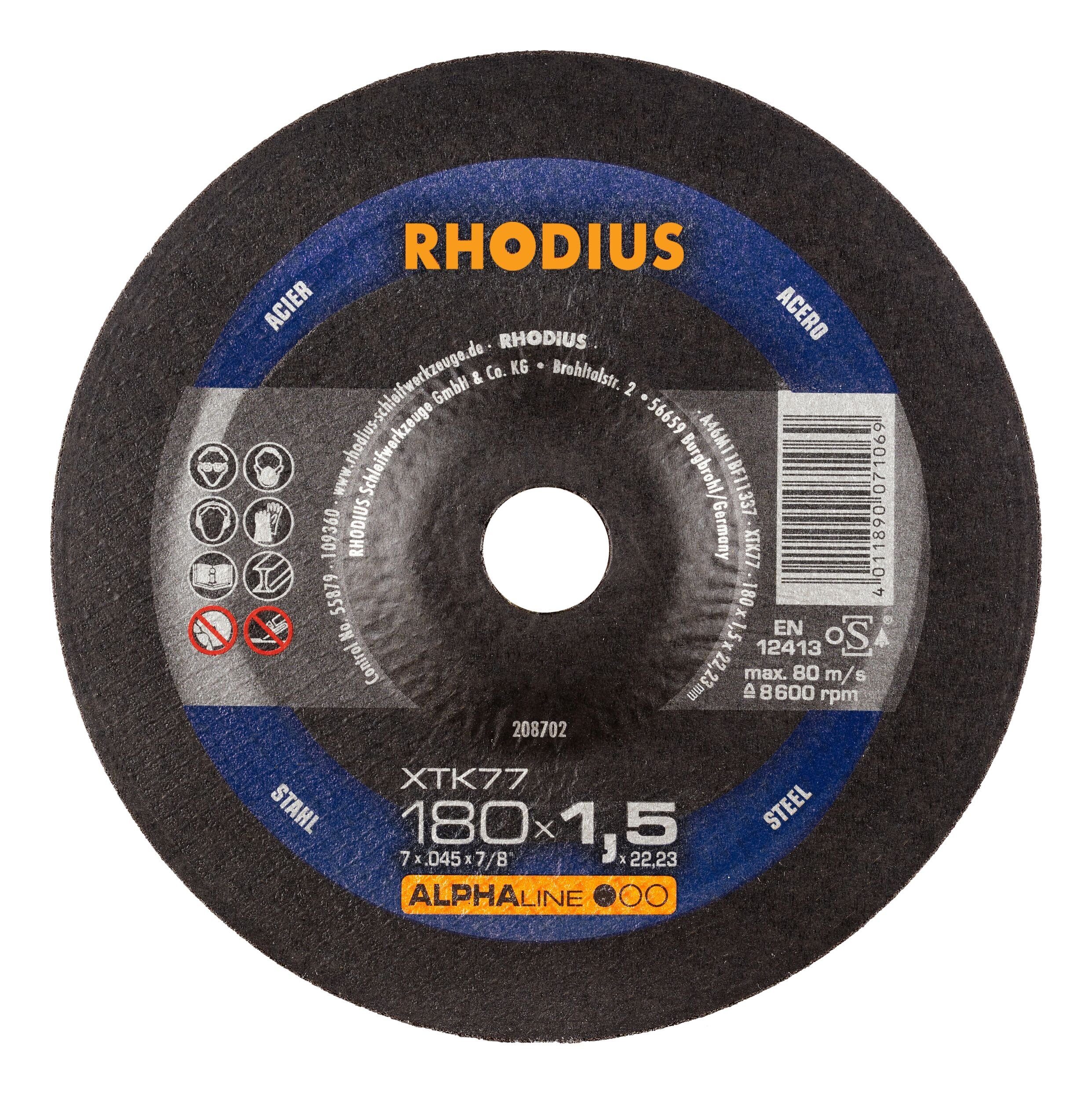 Rhodius ALPHAline XTK77 Extradünne Trennscheibe - 180 x 1,5 x 22,23 mm