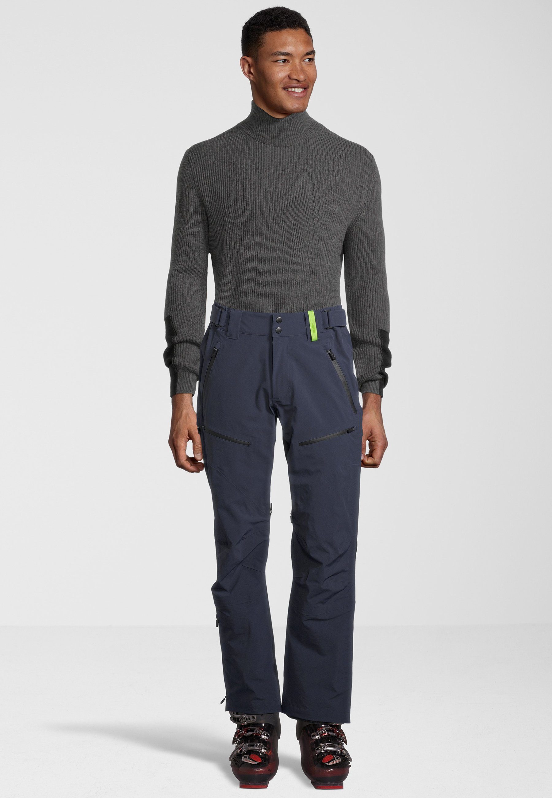 Die Shell-Hose 3 Elements von RH+ SNOW setzt neue Maßstäbe in Sachen Performance und Komfort für anspruchsvolle Wintersportler. Hergestellt aus hochwertigsten Materialien, bietet diese Hose dank ihres 4-Wege-Stretch-Stoffes maximale Bewegungsfreiheit und passt sich jeder Ihrer Bewegungen an. Egal, ob Sie auf der Piste oder beim Skitourengehen unterwegs sind, diese Hose unterstützt Sie optimal und sorgt dafür, dass Ihr Aufenthalt im Freien zu einem unvergesslichen Erlebnis wird. Die Shell-Hose 3 Elements ist gleichermassen atmungsaktiv und feuchtigkeitsregulierend, was bedeutet, dass Sie auch bei intensiverer sportlicher Betätigung stets ein angenehmes Tragegefühl behalten. Sollte es dennoch einmal zu warm werden, ermöglichen Beinreißverschlüsse auf der Innenseite eine individuell anpassbare Belüftung. Die getapten Nähte und die hohe Wassersäule von 20.000 mm garantieren, dass die Hose nicht nur winddicht, sondern auch vollständig wasserdicht ist und Sie jederzeit vor den Elementen schützt. Ein weiteres Highlight der Hose ist das verstellbare System zur Weitenregulierung in der Taille, das zusammen mit dem integrierten, verstellbaren Bund für einen perfekten Sitz sorgt. Die vorgeformten Knie bieten zusätzliche Ergonomie und Beweglichkeit, während die integrierten Gamaschen das Eindringen von Schnee in die Hose verhindern. Schließlich sorgen reflektierende Elemente für erhöhte Sichtbarkeit und Sicherheit bei schlechten Lichtverhältnissen, und die wasserdichten Reißverschlüsse bieten optimalen Schutz für Ihre Wertsachen.