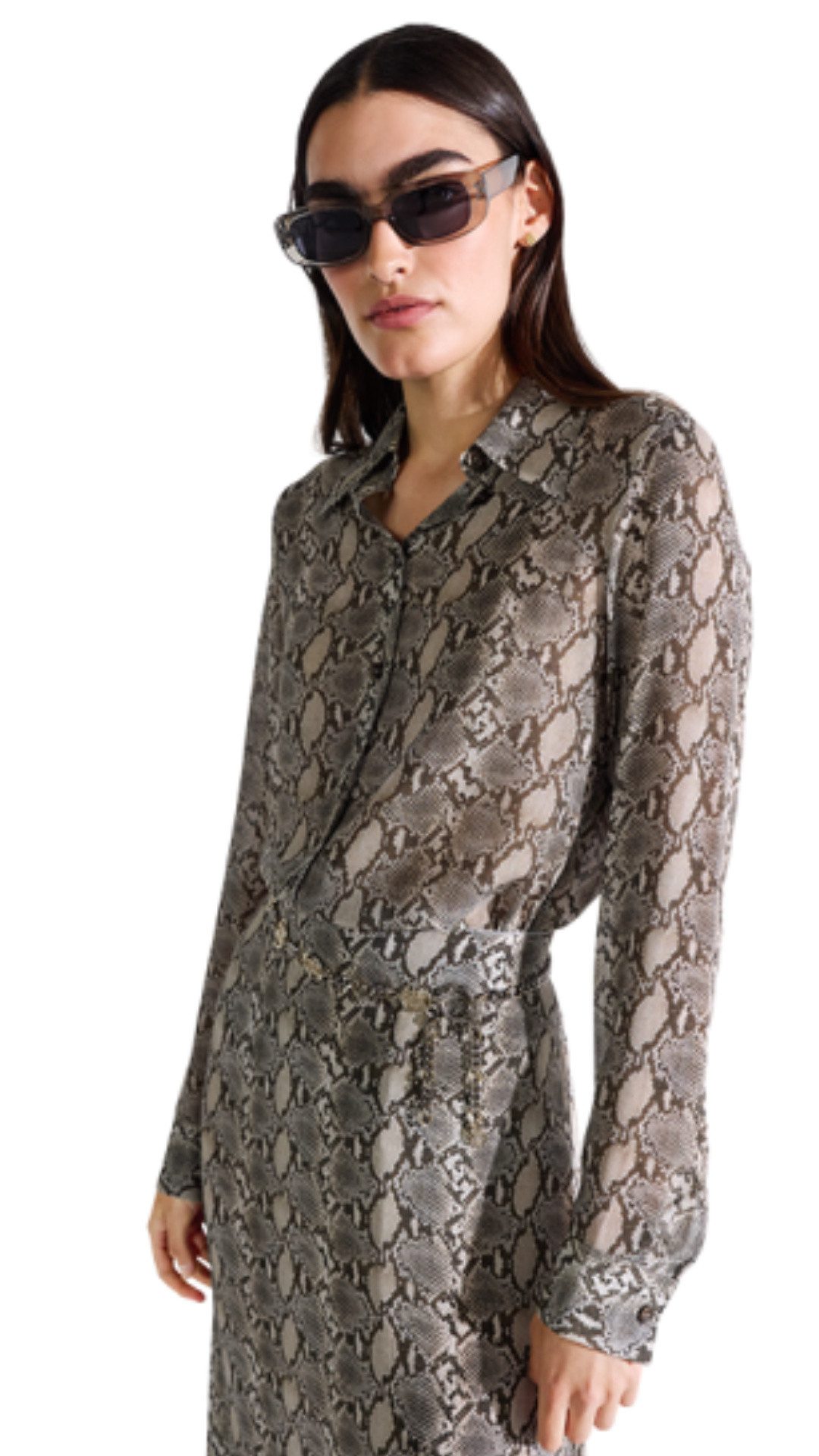 NEU RIANI NEU . Bluse mit femininen Charme, mit faszinierendem Schlangenprint, klassicher Schnitt sorgt für einen entspannten Fall und ein angenehmes Tragegefühl, das hochwertige Material liegt sanft auf der Haut. mit Rundhalsausschnitt und leicht ausgestellten Ärmel. . Farbe: braun gemustert (panama patterned) Material: 100% Viskose.