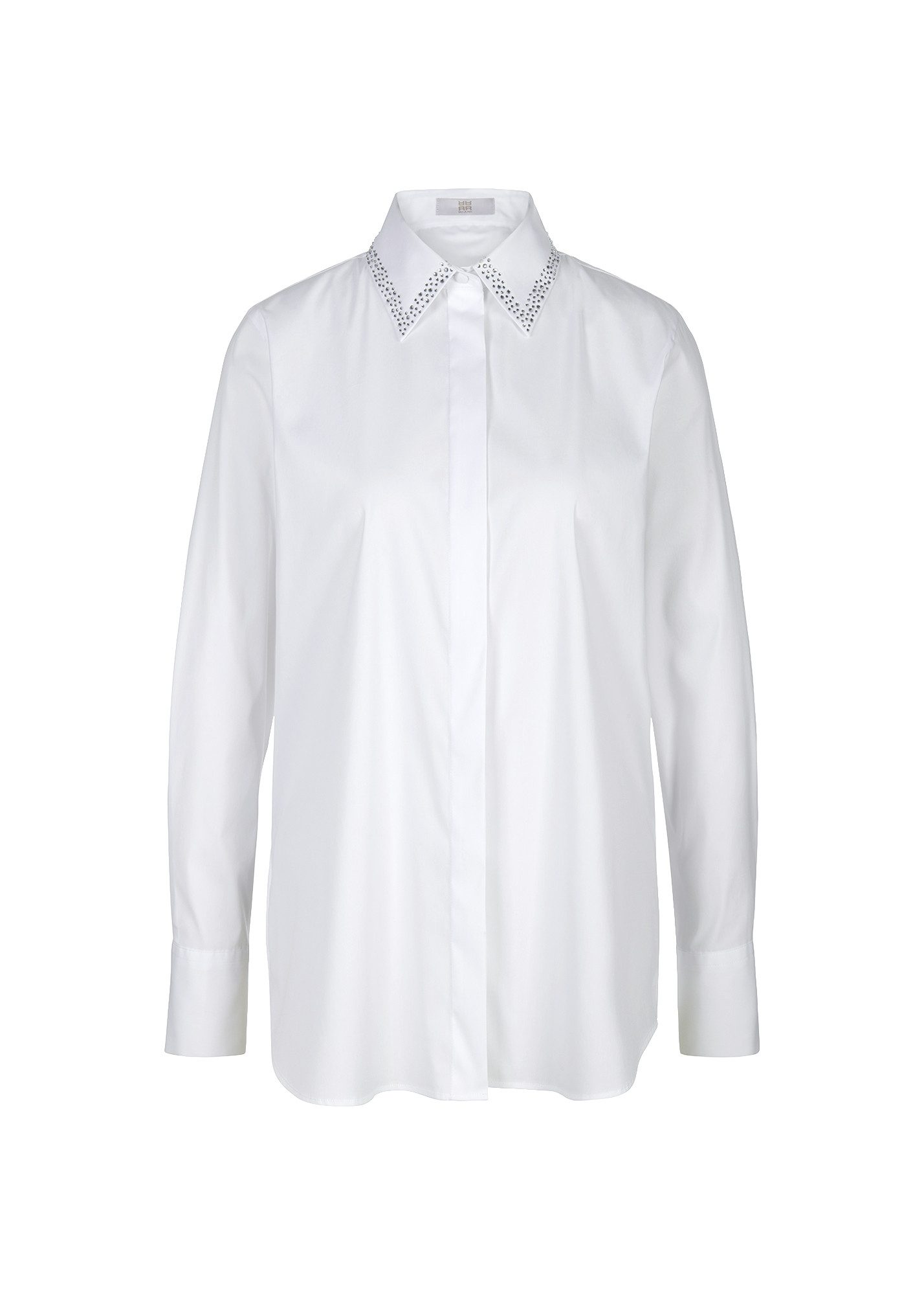 Effekthascherei: Klassisch- elegantes Design trifft auf glitzernden Strass. Die schöne Bluse aus Popeline-Stretch zeigt sich im beliebten Hemdblusen-Style. Funkelnde Akzente setzt der mit Strasssteinen besetzte Kragen. Die verdeckte Knopfleiste sorgt für eine cleane Optik und unterstreicht den zeitlosen Look. Perfekt kombinierbar zu eleganten und casual Outfits, verleiht sie jedem Outfit eine dezente Glamour-Note.