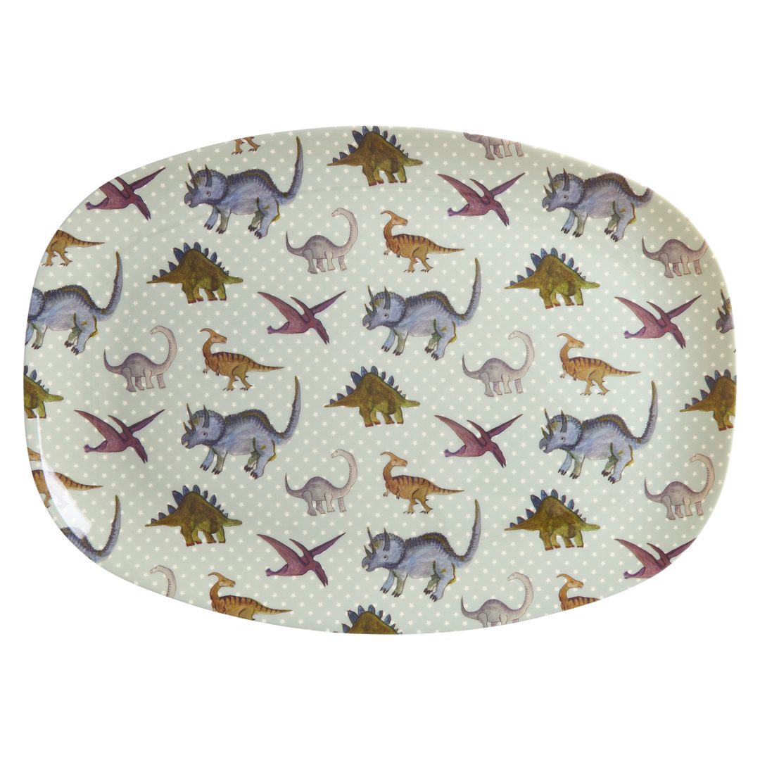 Rechteckiger Kinderteller - Graublau - New Dino Print
