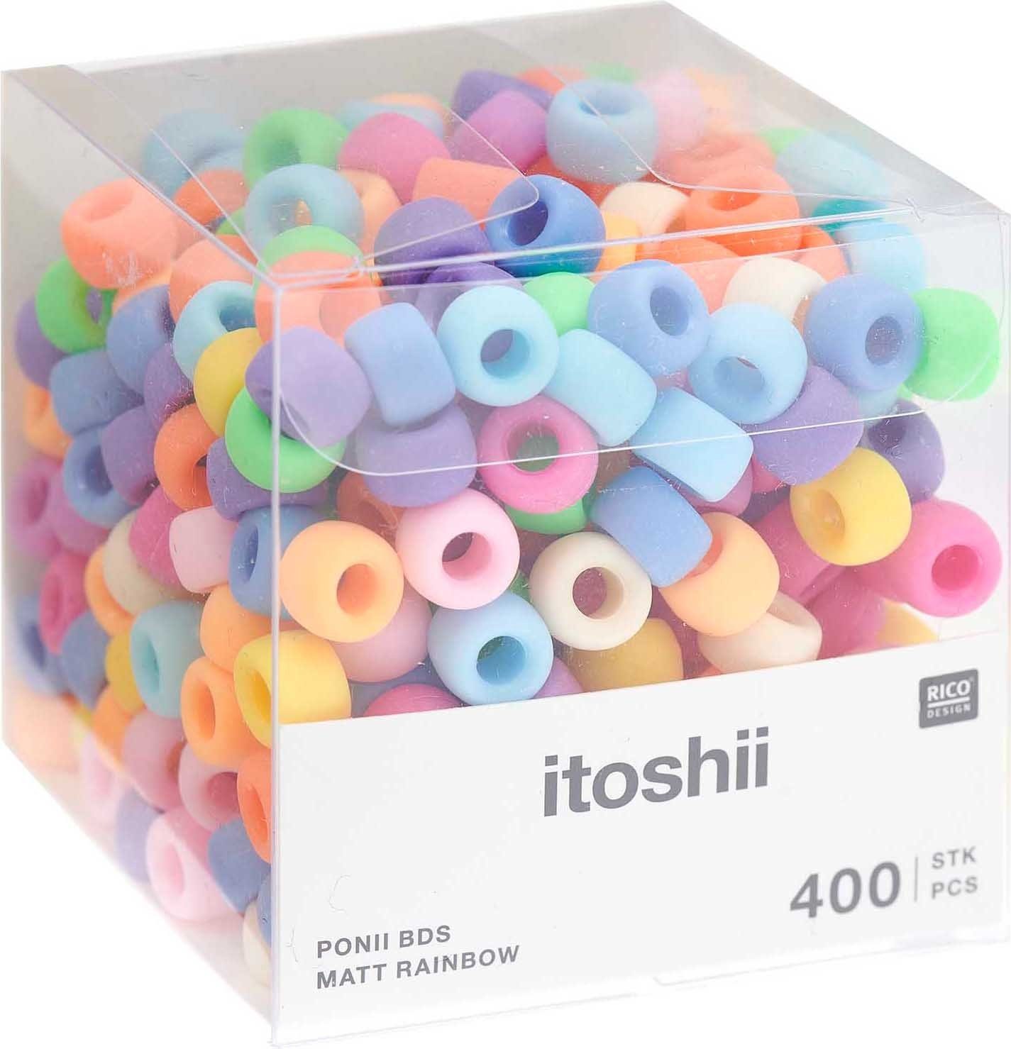 Ein toller itoshii Perlenmix 'Ponii Beads' in schicken Farbkombinationen für die Gestaltung trendiger Armbänder. Kombiniert mit Ripsbändern, Bügeltransfermotiven, einem passenden Verschluss und weiteren Perlen entstehen einzigartige Schmuckstücke. Hier kann man seiner Kreativität freien Lauf lassen. Die Perlen haben eine Размер von ca. 9 x 6 mm.