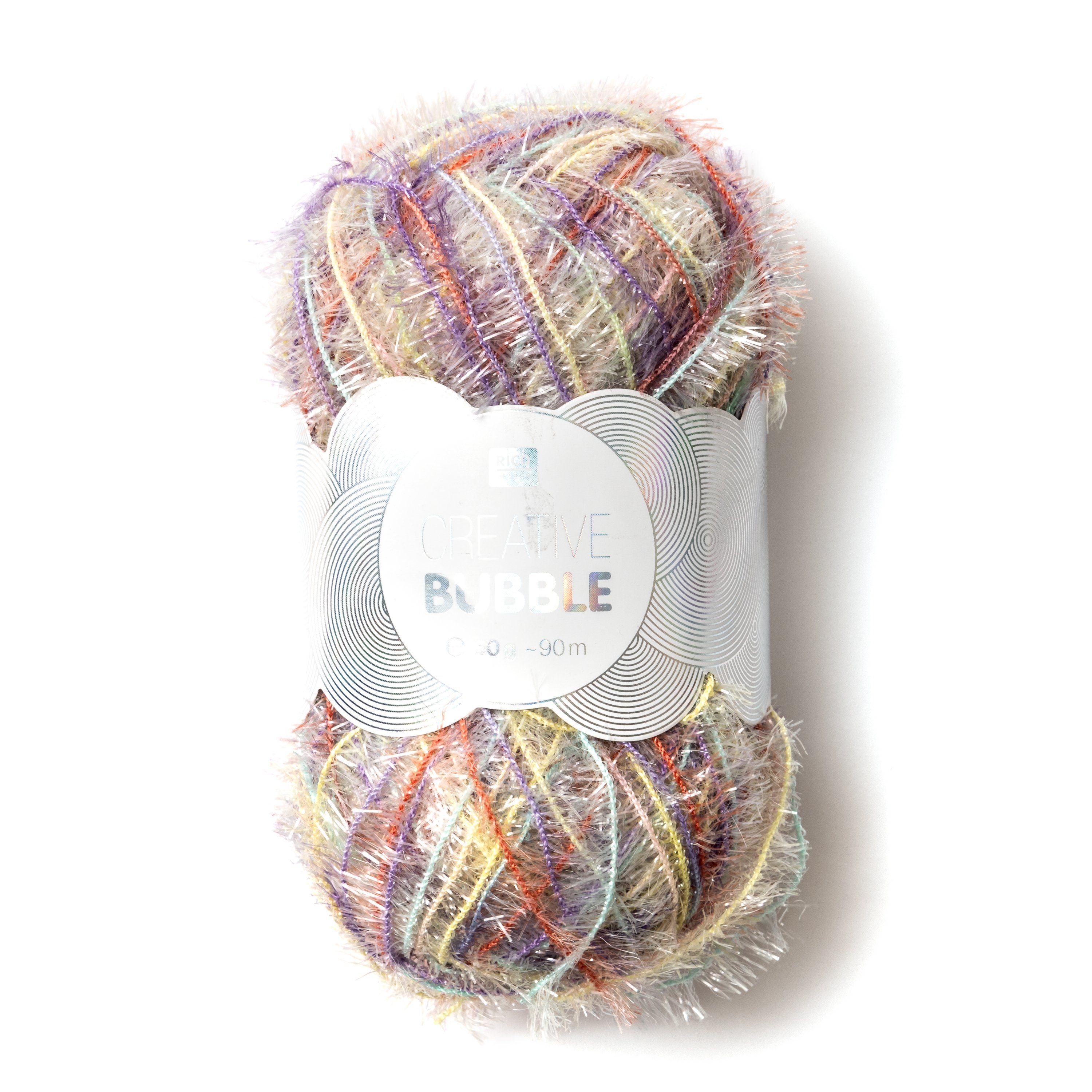 Dieses Garn 'Rico Design Creative Bubble Print' hat eine Lauflänge von ca. 90 m auf einem Knäul von 50 g und besteht aus 100 % Polyester. Jedes Knäul hat einen tollen Farbverlauf mit dem einzigartige Effekte entstehen. Eine schöne Sache für Badeschwämme, Peeling-Schwämme, Duschtiere und Abwasch-Schwämme. Eine wunderbare Geschenkidee zusammen mit selbstgemachter Seife, Badekugeln und Badesalz.