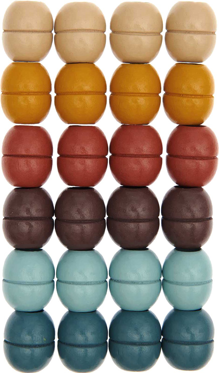 Rico Design Made by Me Makramee Perlen 'Erdfarben', 24 Stück mit einer Размер von ca. 19 x 22 mm und einer Bohrung von ca. 10 mm. Aus Holz. Die gedeckten Farben setzen schicke Akzente in kreativen Makramee-Arbeiten. So lassen sich Blumenampeln, Traumfänger und Wandbehänge toll aufpeppen. Dank der großen Bohrung lassen sich dickere Kordeln hindurchfädeln oder auch dünnes Garn mehrfach durchziehen.