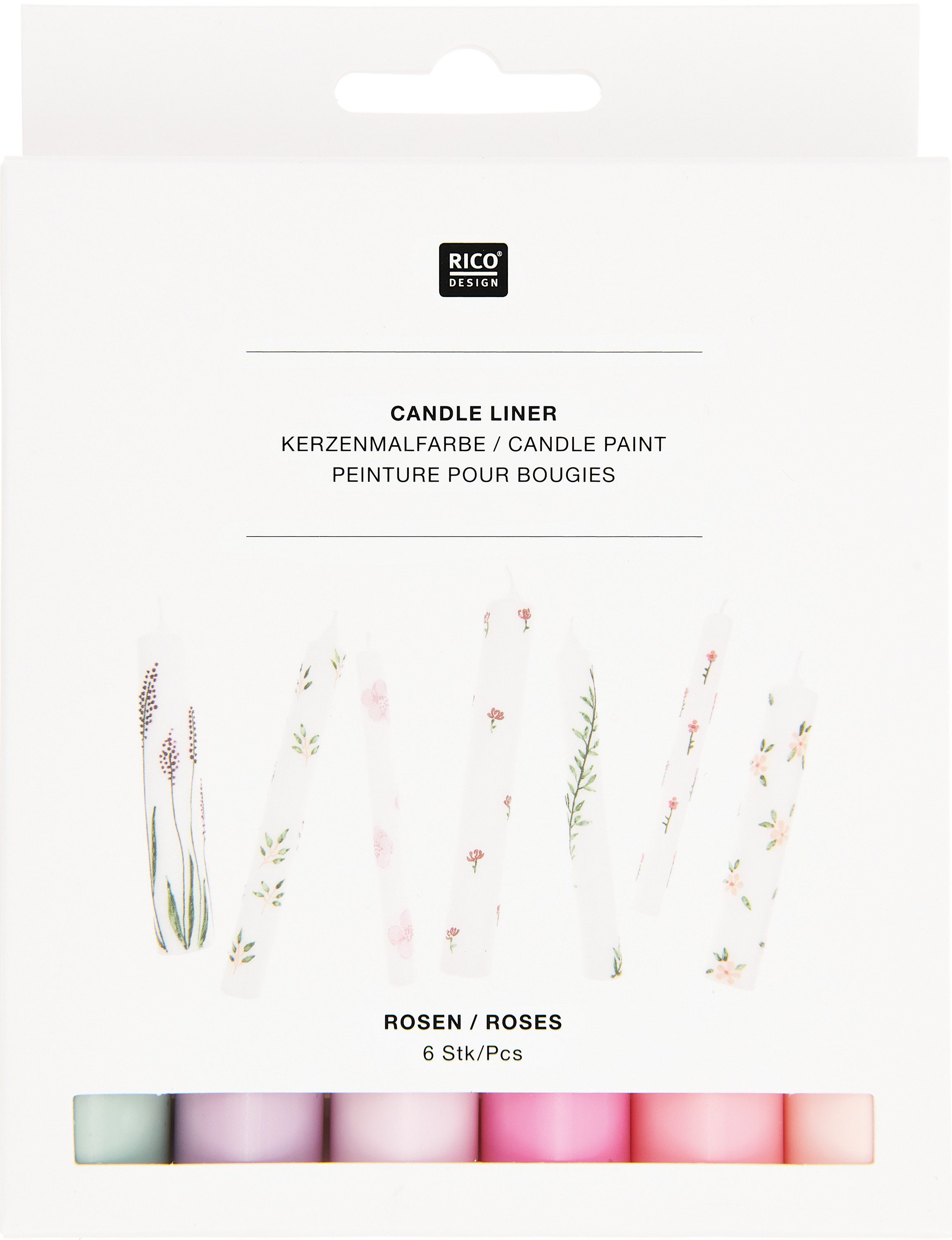 Das Candle Liner Set 'Roses' eröffnet dir die Möglichkeit, Kerzen mit deinen eigenen kreativen Mustern und Motiven zu verzieren. Sechs harmonisch aufeinander abgestimmte Farben – Hellrosa, Pink, Magenta, Flieder, Lila und Salbei – lassen deine Rosen-Dekorationen erstrahlen. Jeder der sechs Verzierwachs-Liner von Rico Design enthält 30 ml Farbe, die mühelos aufzutragen ist und direkt auf der Kerze haftet. Ideal für DIY-Projekte, personalisierte Geschenke oder besondere Anlässe wie Hochzeiten und Geburtstage. Ein Set für kreative Köpfe, das dir hilft, Kerzen individuell und mit persönlicher Note zu gestalten.