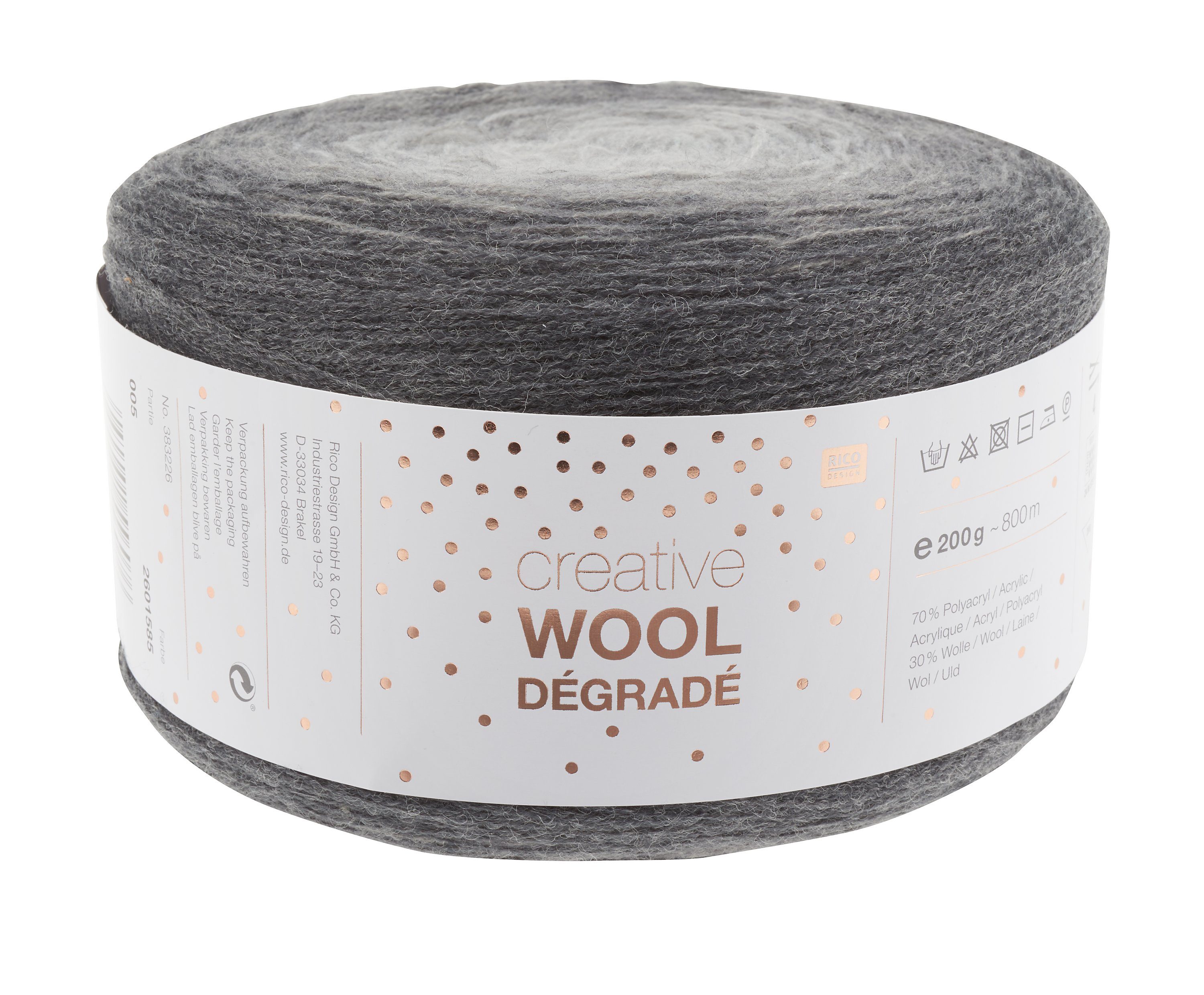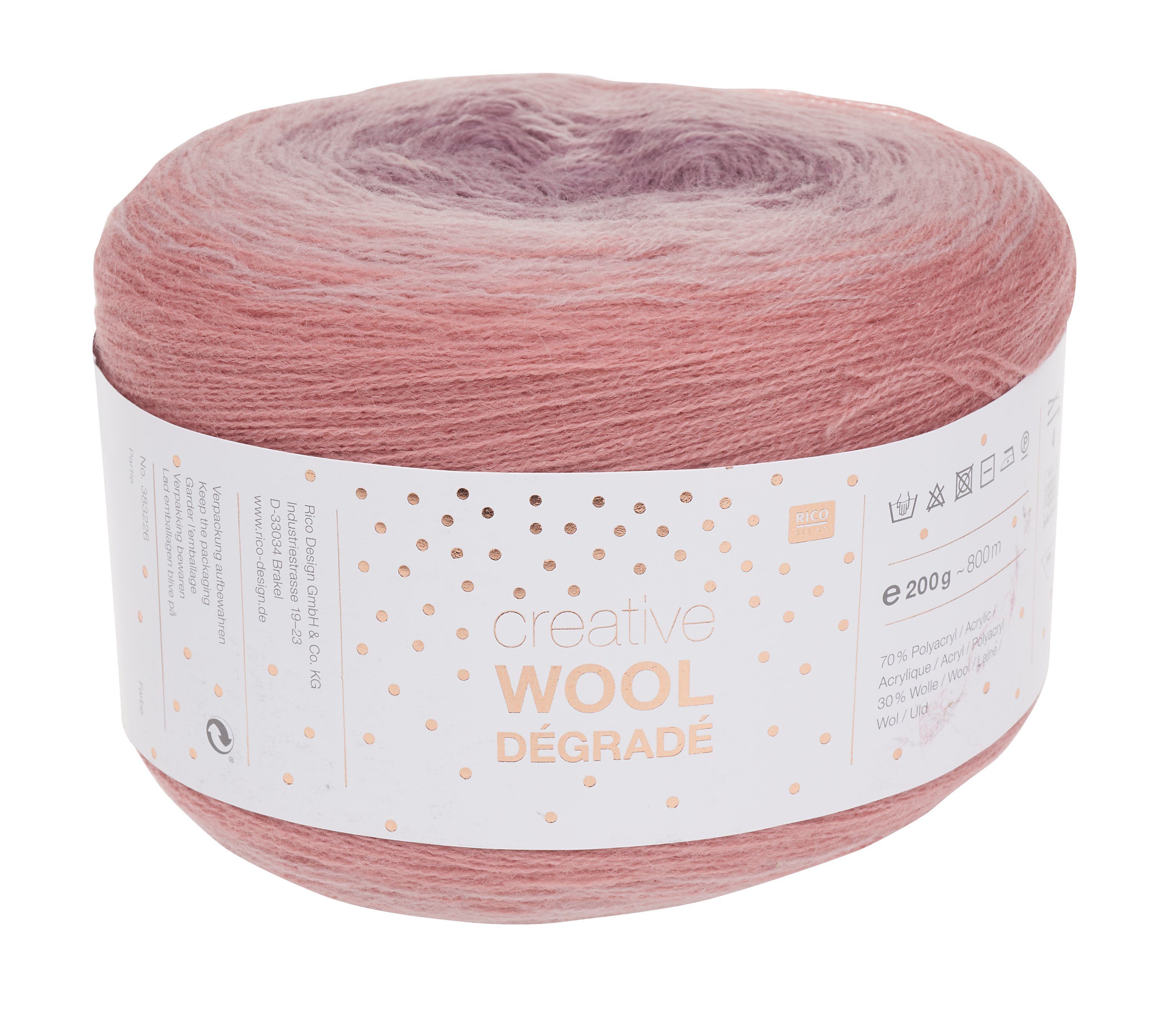 Mit Rico Creative Wool Dégradé kannst du deiner Kreativität freien Lauf lassen. Dieses 4-fädige Strickgarn besteht aus 70 % Polyacryl und 30 % Wolle und wird als 200 g Knäuel mit 800 m Lauflänge geliefert. Es ist weich und angenehm im Griff und lässt sich mit Nadelstärke 4,0 gut zu einem glatten Maschenbild verarbeiten. Während des Strickens entsteht aus einem Knäuel ein zarter pastelliger Farbverlauf. Für ein besonders feines Ergebnis empfiehlt es sich, Lace Stricknadeln zu verwenden. Rico Creative Wool Dégradé ist ideal für Schals, Mützen, Pullover und vieles mehr. Es ist waschbar bis maximal 40 °C und somit bestens für den Winter geeignet.