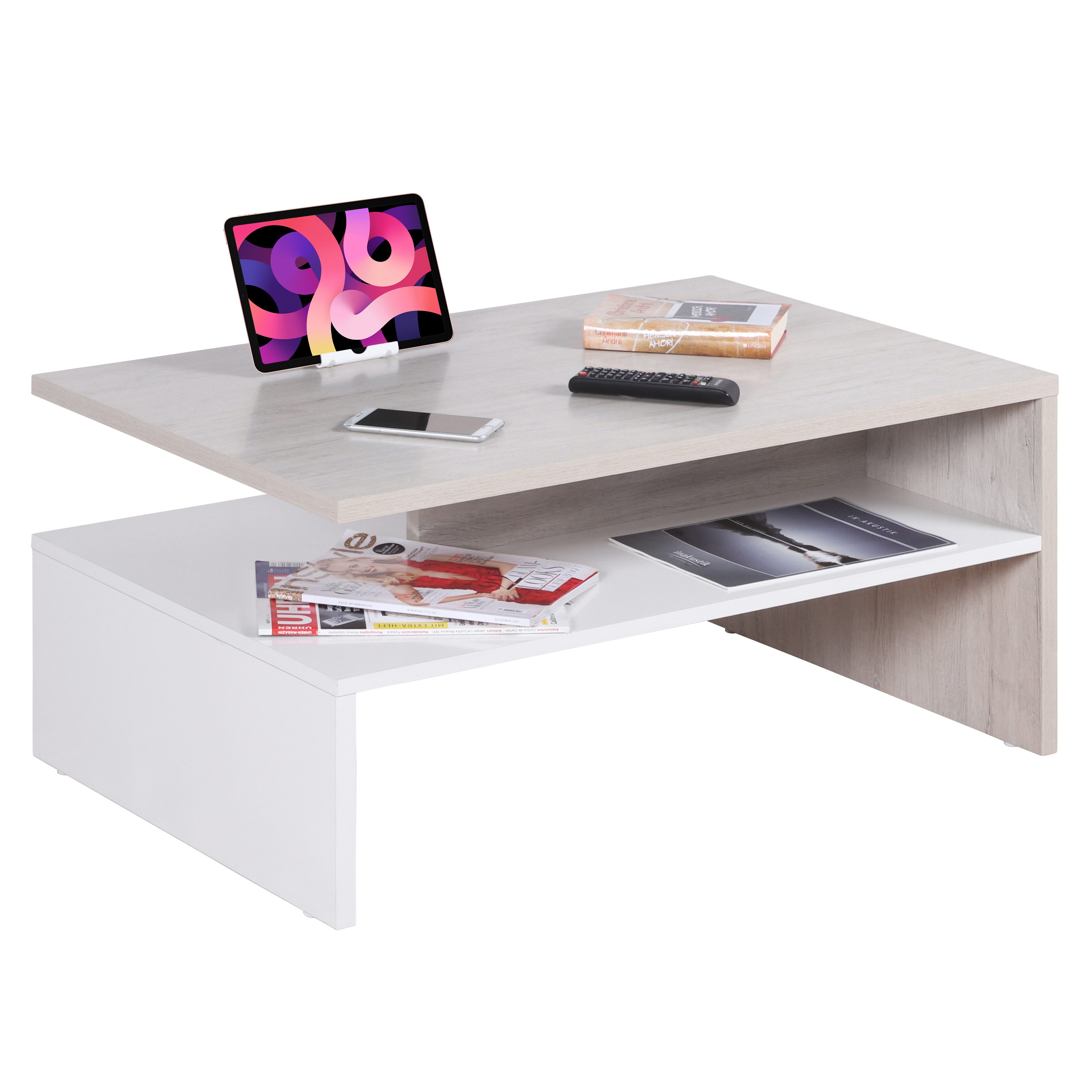 Perfekte Farben im charakteristischen Design – Mit diesem raffinierten Beistelltisch verleihen Sie Ihren Räumen wohlige Wärme. Greifen Sie entspannt zu Ihren Lieblingsbüchern auf der mittleren Ablage, während Sie einen Entspannungstee am Feierabend genießen. Oder benutzen Sie diesen Tisch für Ihre Praxis- und Büroräume. Die Platten verfügen über eine 22mm-Stärke und sind melaminbeschichtet. Das mittlere Trennbrett liefert einen Bereich zum Anlehnen Ihrer Gegenstände und begrenzt diese auch vor dem Nach-hinten-Rutschen.