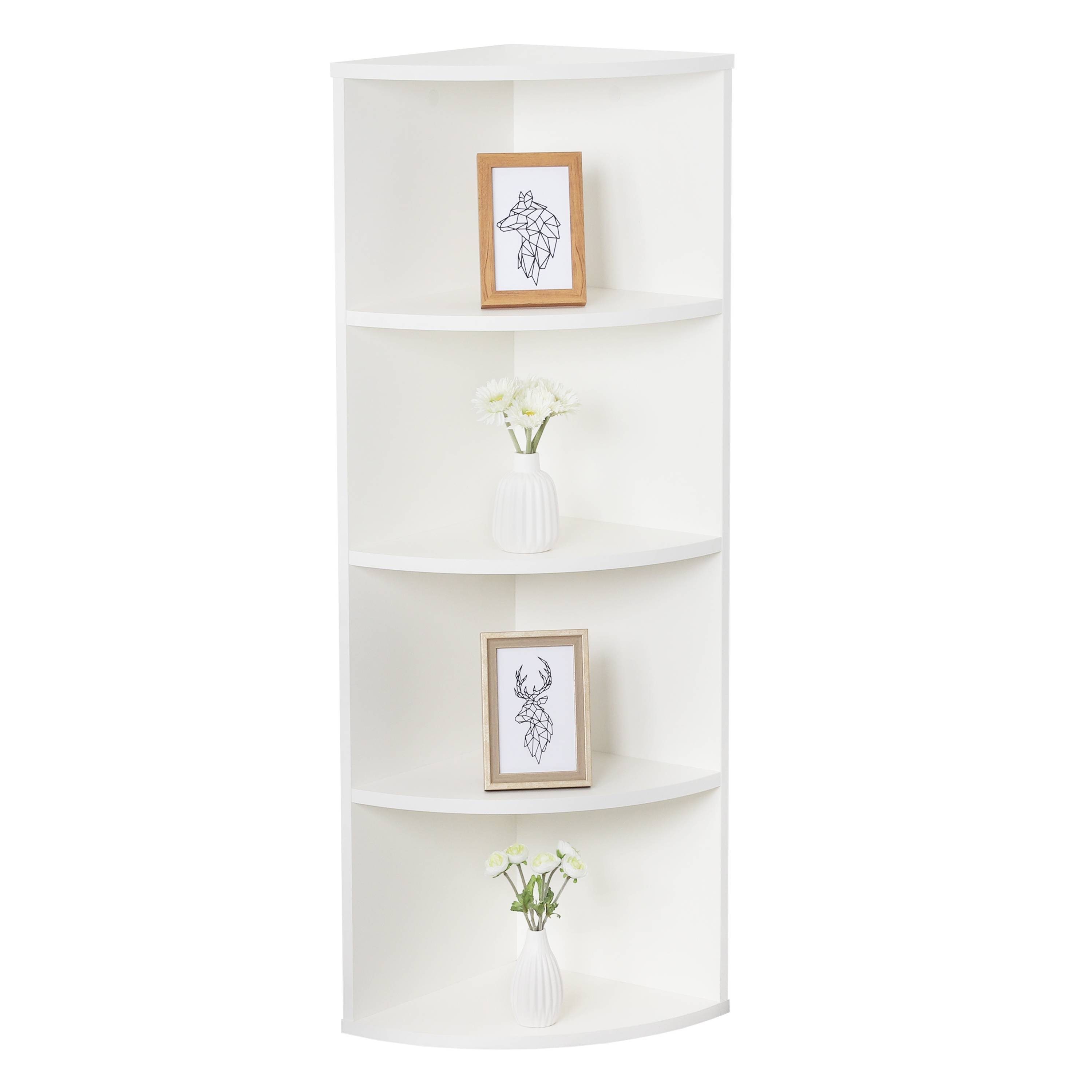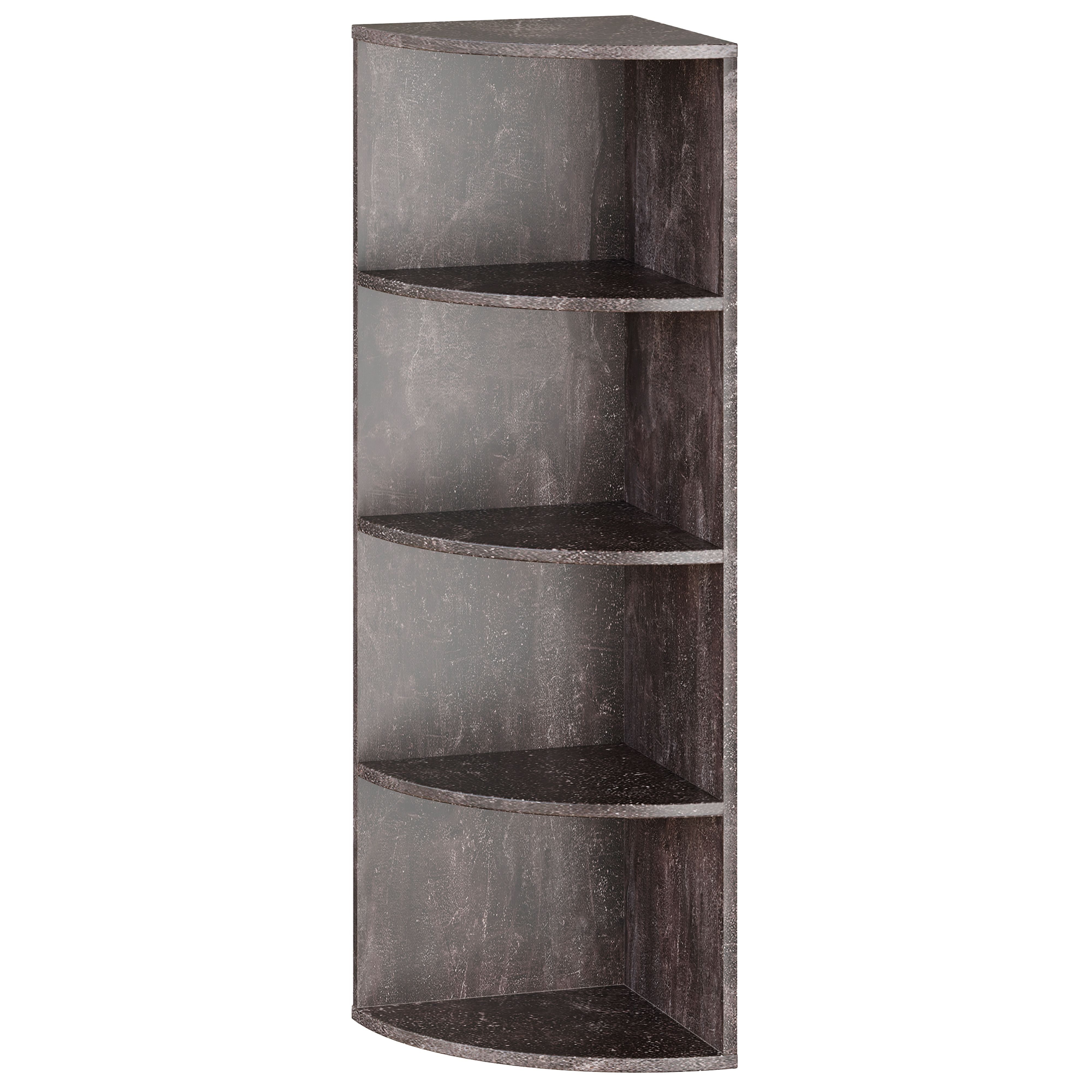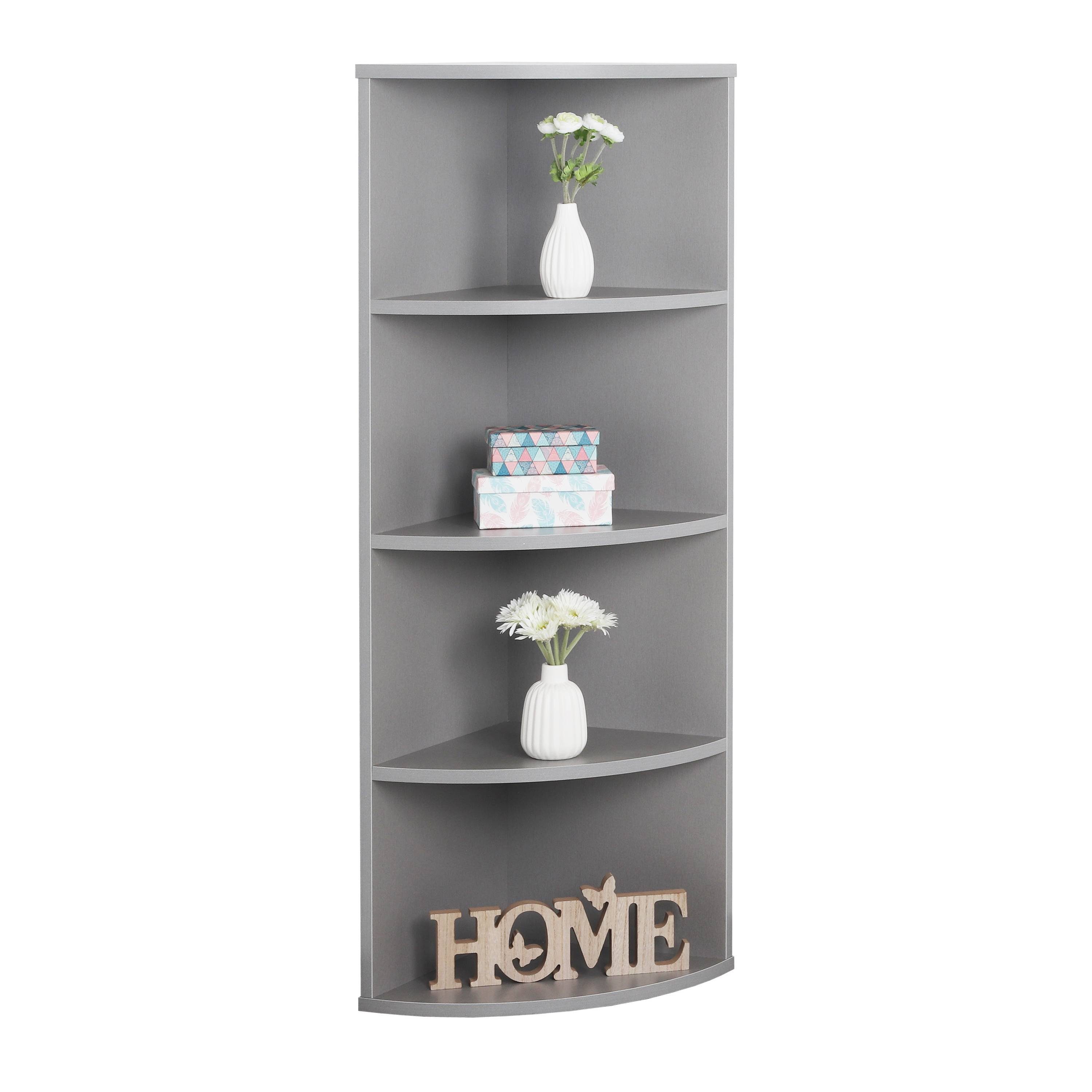 Dieses platzsparende Eckregal ist ein kleines hängendes Bücherregal. Das Hängeregal bietet Stauraum auf verschiedenen Ebenen. 4 Fächer bieten viel Platz für Dekorationen und mehr. Die abgerundeten und offenen Regale sind ideal für kleine Bücher, Spielzeug, Pflanzen oder Lautsprecher. Es kann auch als CD-Halter verwendet werden. Ein modernes, dekoratives Regal für das Wohnzimmer, Schlafzimmer, Kinderzimmer, den Flur oder das Büro oder auch für die Küchenorganisation, z.B. als Gewürz- oder Kräuterregal geeignet. Der Hängeschrank kann an der Wand montiert oder auf dem Boden aufgestellt werden. Horizontal ist das Regal auch für Aktenordner geeignet. Interne Schraubverbindungen und farblich abgestimmte Schraubenabdeckungen vervollständigen das Design. Dieses Möbelstück aus Spanplatten ist nur für den Innenbereich geeignet.