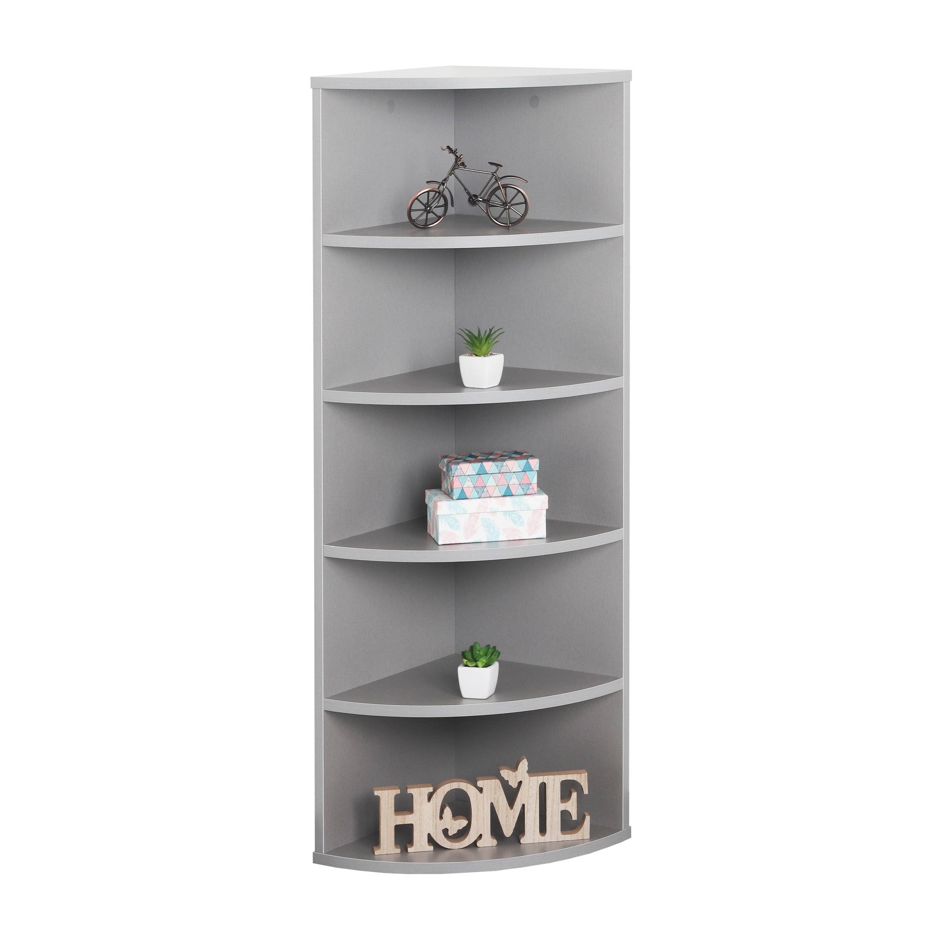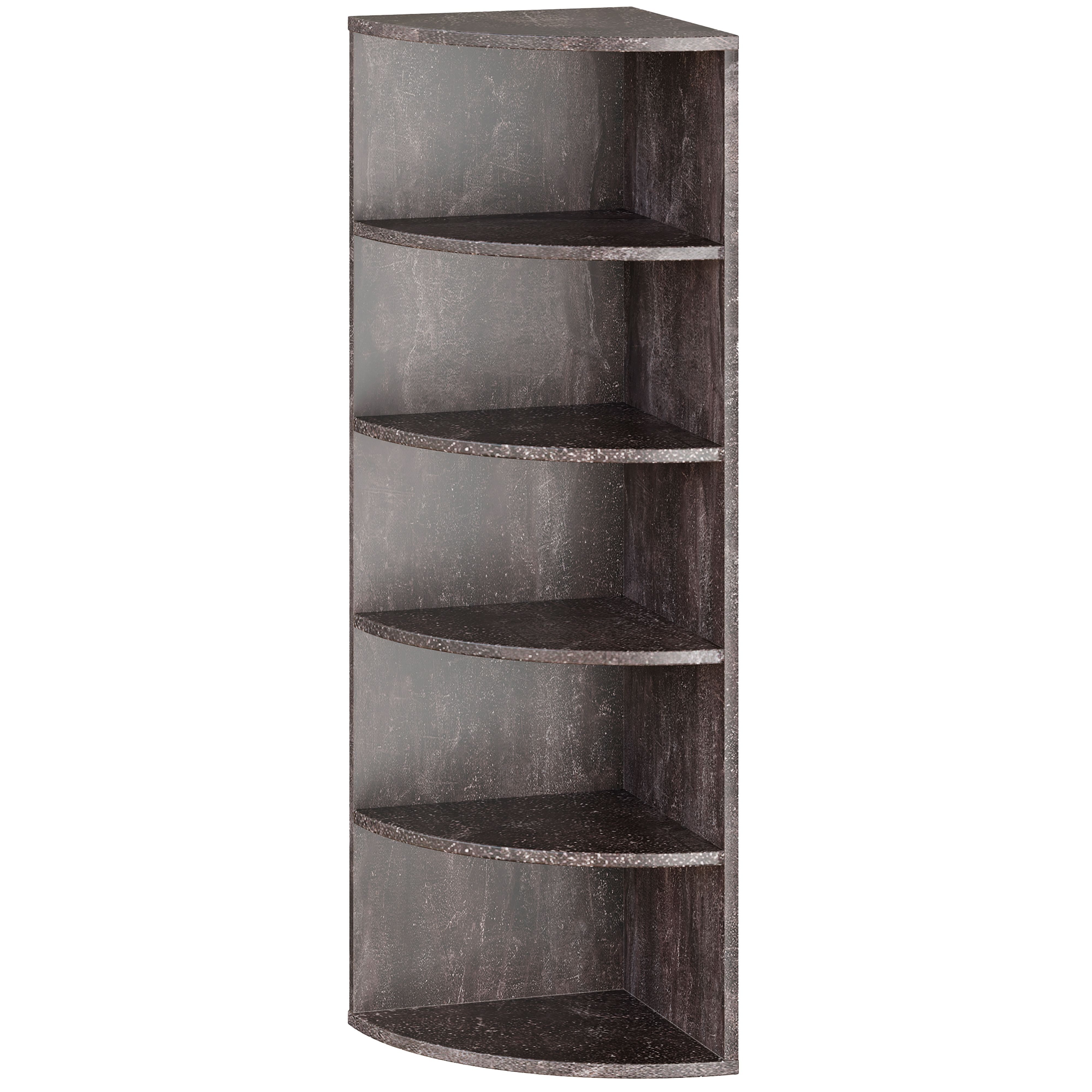 Dieses platzsparende Eckregal ist ein kleines hängendes Bücherregal. Das Hängeregal bietet Stauraum auf verschiedenen Ebenen. 5 Fächer bieten viel Platz für Dekorationen und mehr. Die abgerundeten und offenen Regale sind ideal für kleine Bücher, Spielzeug, Pflanzen oder Lautsprecher. Es kann auch als CD-Halter verwendet werden. Ein modernes, dekoratives Regal für das Wohnzimmer, Schlafzimmer, Kinderzimmer, den Flur oder das Büro oder auch für die Küchenorganisation, z.B. als Gewürz- oder Kräuterregal geeignet. Der Hängeschrank kann an der Wand montiert oder auf dem Boden aufgestellt werden. Horizontal ist das Regal auch für Aktenordner geeignet. Interne Schraubverbindungen und farblich abgestimmte Schraubenabdeckungen vervollständigen das Design. Dieses Möbelstück aus Spanplatten ist nur für den Innenbereich geeignet.