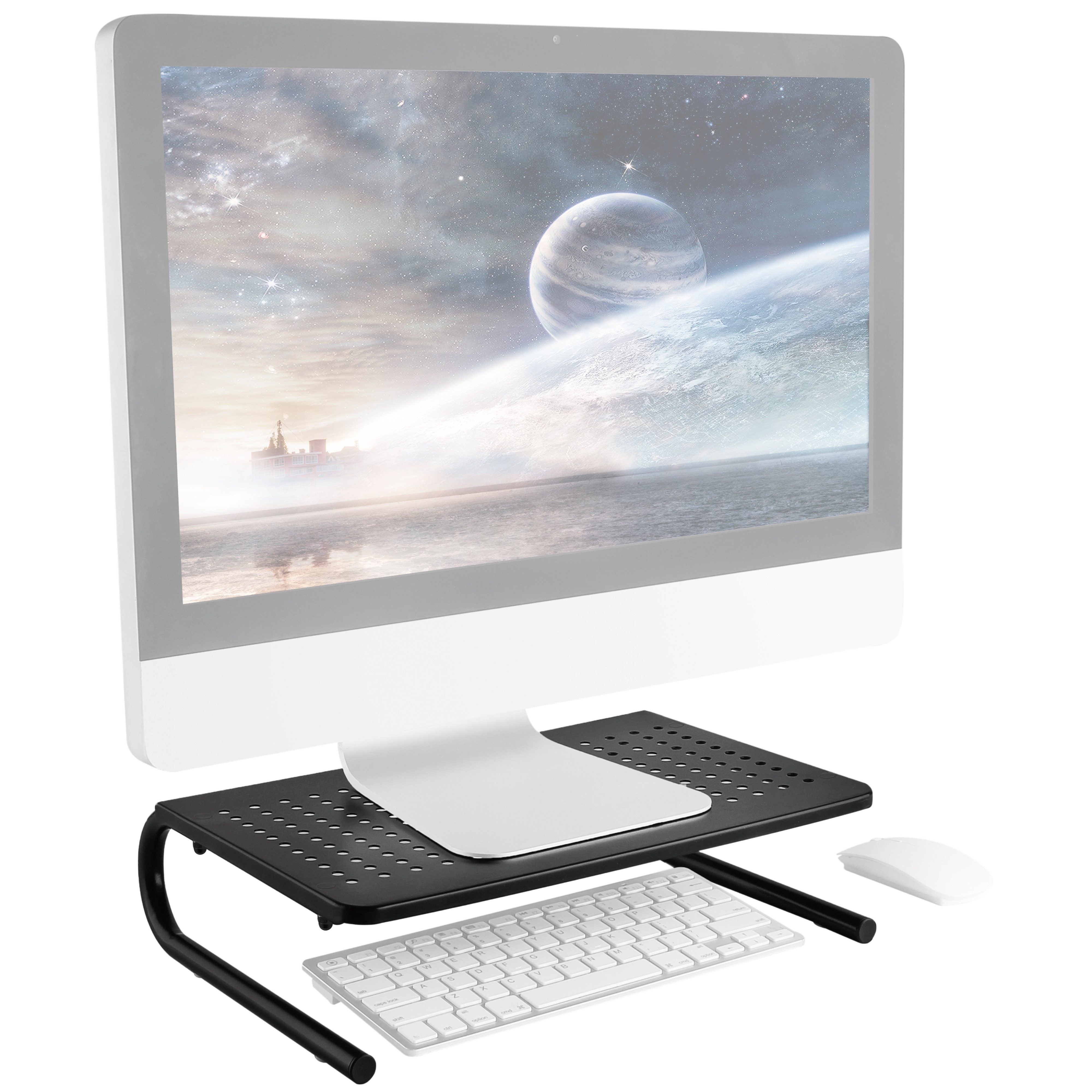 Schaffen Sie Ordnung und Ergonomie auf Ihrem Schreibtisch mit dem RICOO Monitor TV Laptop Metall-Stand Aufsatz FS082. Dieser stabile Tischaufsatz aus pulverbeschichtetem Metall in elegantem Schwarz hebt Ihren Monitor, Fernseher oder Laptop sicher auf eine angenehme Augenhöhe. Mit einer großzügigen Ablagefläche von 37 x 23 cm und einer beeindruckenden Tragkraft von bis zu 20 kg bietet dieser Monitorständer eine zuverlässige Basis für Ihre Geräte.