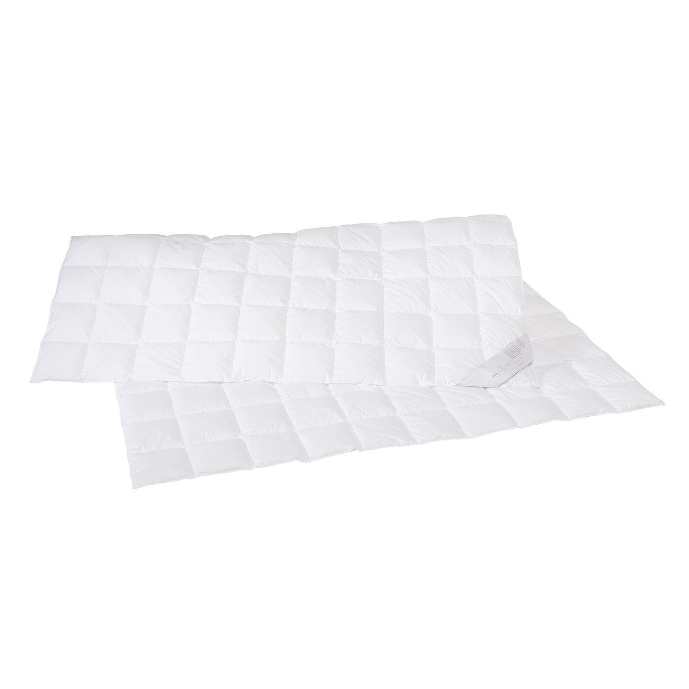 Wunderbar leicht und angenehm wärmend. Die Daunendecke "Selection Platin" sind mit großflockigen, weichen und sorgfältig ausgewählten Qualitätsdaunen gefüllt, welche auf natürliche Weise das Mikroklima regulieren. Diese Daunendecke bietet optimales Wärmerückhaltevermögen und Atmungsaktivität bei niedrigem Eigengewicht. In handwerklicher Tradition mit Liebe zum Detail wird jede Daunendecke individuell gefertigt und befüllt. Durch die hochwertige Verarbeitung entsteht eine anschmiegsame und softe Decke mit perfektem Sitz. Genießen Sie die Leichtigkeit von "Selection Platin" extra leicht.