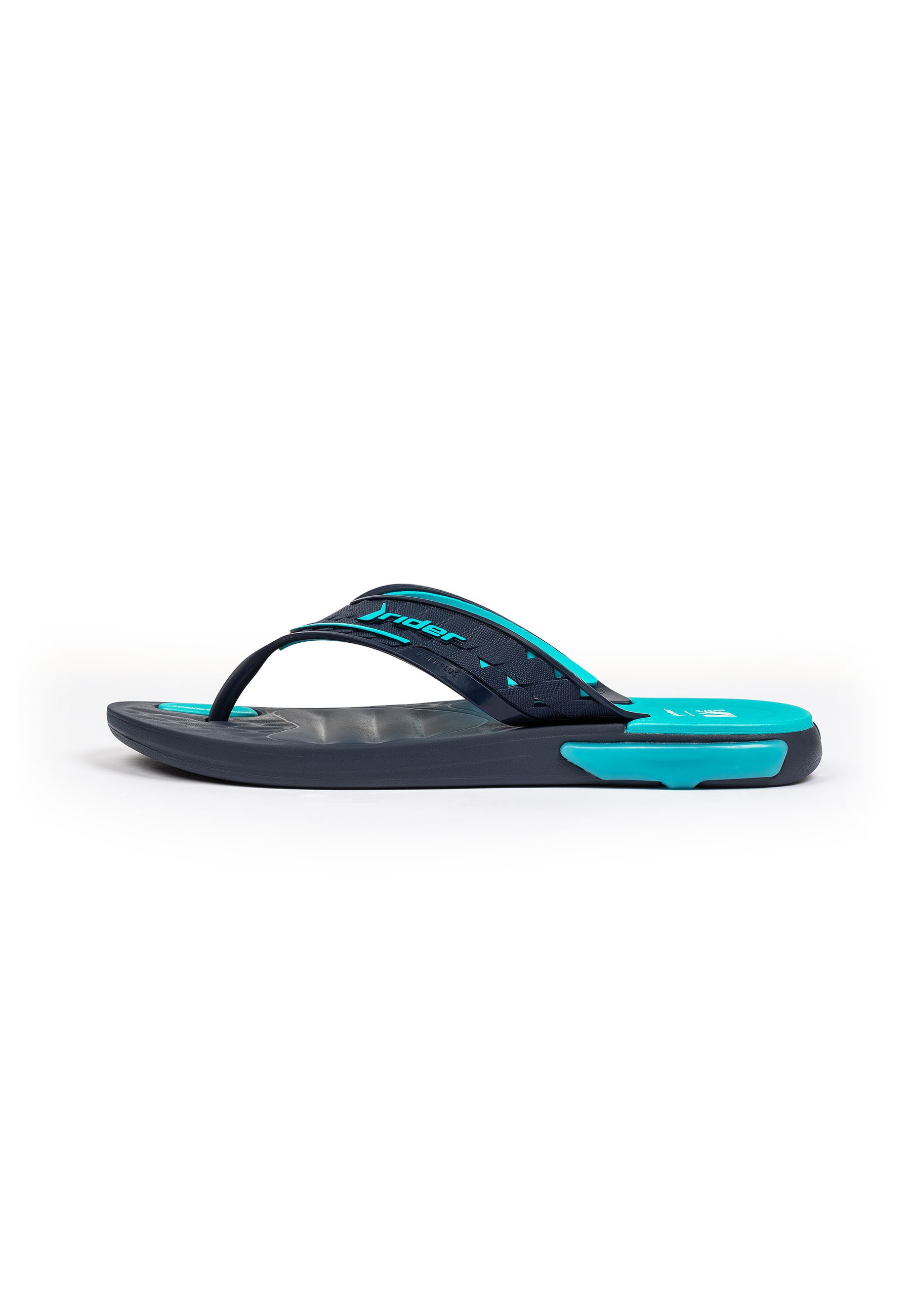 Dieser Rider Herren-Zehentrenner überzeugt mit einem sportlich-modernen Design in Schwarz und leuchtendem Türkis – perfekt für Strandtage, Freizeit oder sommerliche City-Looks. Der breite, robuste Zehenriemen mit geometrischer Struktur und Rider-Logo bietet nicht nur einen sicheren Halt, sondern verleiht dem Schuh auch eine dynamische Optik. Für hohen Tragekomfort sorgt das ergonomisch geformte Fußbett mit weicher Struktur und wellenartiger Polsterung, die jeden Schritt angenehm dämpft. Die rutschfeste Laufsohle mit farblich abgesetztem Fersenpolster unterstützt ein sicheres Laufgefühl und verbessert die Stoßdämpfung zusätzlich. Dank des wasserfreundlichen Materials ist die Sandale ideal für nasse Umgebungen geeignet, sie trocknet schnell und lässt sich leicht reinigen.