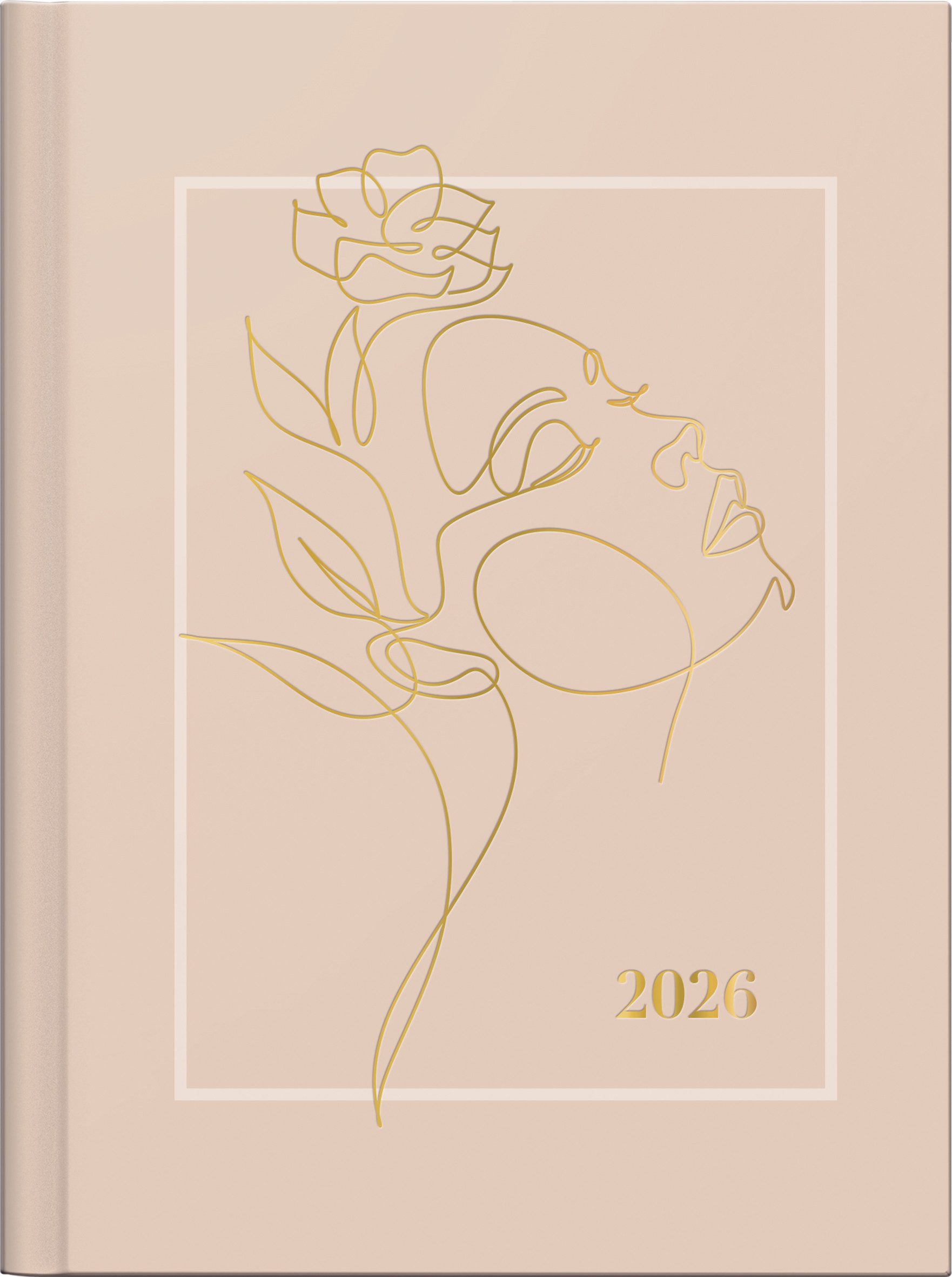 Rido Taschenkalender Premium Young Line Mini 2026 „One Line“ A6, Papier Blattgröße: 120 × 160 mm • 2 Seiten = 1 Woche • 160 Seiten, Druckfarbe Kalendarium: braun • 90 g/m², Premiumpapier, Klebebindung • Grafik-Einband, Farbe: beige, goldfarbene Prägung • Jahresübersicht aktuelles Jahr und Folgejahr, 12 Seiten Monatsplan aktuelles Jahr, 6 Seiten Folgejahr, 16 Seiten Notizen • Eckperforation • für Kalenderjahr 2026