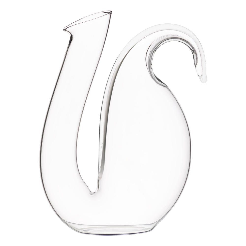 Dieser handgefertigte Dekanter ist mit einem weißen Streifen verziert. Benannt ist er nach der exklusivsten und begehrtesten Hühnerrasse der Welt, die ursprünglich aus Indonesien stammt. Der elegante und imposante Auftritt des Ayam-Hahnes inspirierte Maximilian J. Riedel zu diesem innovativen und gleichzeitig funktionalen Design. Seiner erfolgreichen Familientradition verpflichtet, wollte er anlässlich des 260 Jahre-Jubiläums seines Familienunternehmens etwas Außergewöhnliches, etwas ganz Neues schaffen. Mit Ayam ist das eindrucksvoll gelungen. Ayam ist eine Dekanter mit Doppeldekantierfunktion - das bedeutet, der Wein wird sowohl beim Ein- als auch beim Ausschenken belüftet. Dadurch verkürzt sich die Dekantierdauer erheblich. Die intensive Sauerstoffzufuhr ist an dem sonoren Gurgeln zu erkennen, das dann entsteht, wenn der Wein beim Ein- und Ausfließen durchgewirbelt wird. Die Form des Dekanters ist platzsparend und ermöglicht eine einfache, unkomplizierte Handhabung. Aber das ist nicht der Clou dieses Stücks. Die Weltinnovation liegt in seinem Design, das so gestaltet ist, dass der aus Kristallglas gefertigte Dekanter nicht nur am Tisch stehen, sondern - auch hängen kann! Unmöglich- Nein! Sein exakt ausbalanciertes Design, in perfekt manueller Ausarbeitung umgesetzt, macht es möglich. RIEDEL-Tipp: Nutzen Sie Glasreinigerperlen, um Verschmutzungen im Dekanter zu beseitigen.