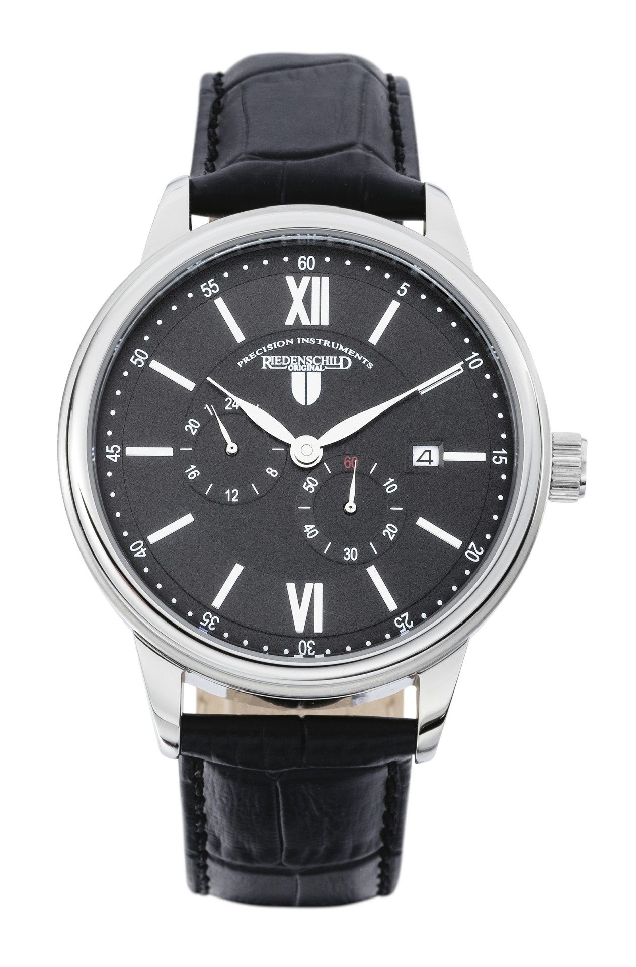 Edle Automatikuhr in elegantem und klassischen Design. Das schwarze Lederarmband mit Alligatorprägung und schwarzer Naht passt perfekt zum Zifferblatt. Die silbernen Zeiger und Indizes sind gut erkennbar. Zudem ist das Modell bis zu 5 ATM Wasserdicht. Die Uhr wird von einem Japanischen Automatikwerk von Miyota angetrieben. Ein aus Edelstahl gefertigtes Gehäuse rundet das elegante Design ab. Durch den Gehäuseboden mit Glaseinsatz kann das ganggenaue Automatikuhrwerk mit einer Gangreserve von 42 Stunden von Miyota betrachtet werden.