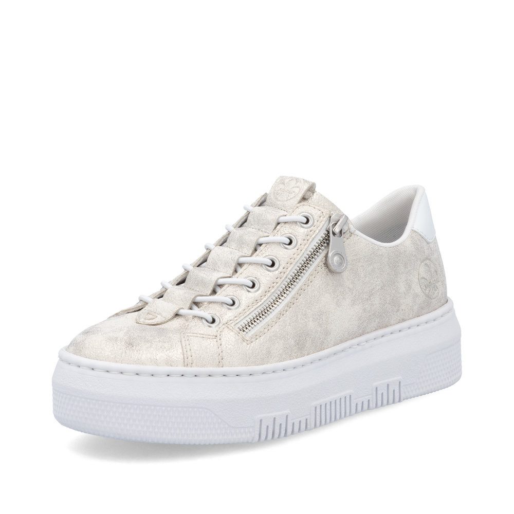 Auf dem Fashion-Radar! Diese grauweißen Rieker Sneaker wurden aufwendig verarbeitet. Ein Reißverschluss ergänzt die Schnürung und sorgt für Funktionalität und Komfort. Die ultra leichte und flexible Plateausohle verwöhnt die Füße zusätzlich bei jedem Schritt. Zudem ist die Decksohle extra weich. Cool, cooler, Sneaker by Rieker!