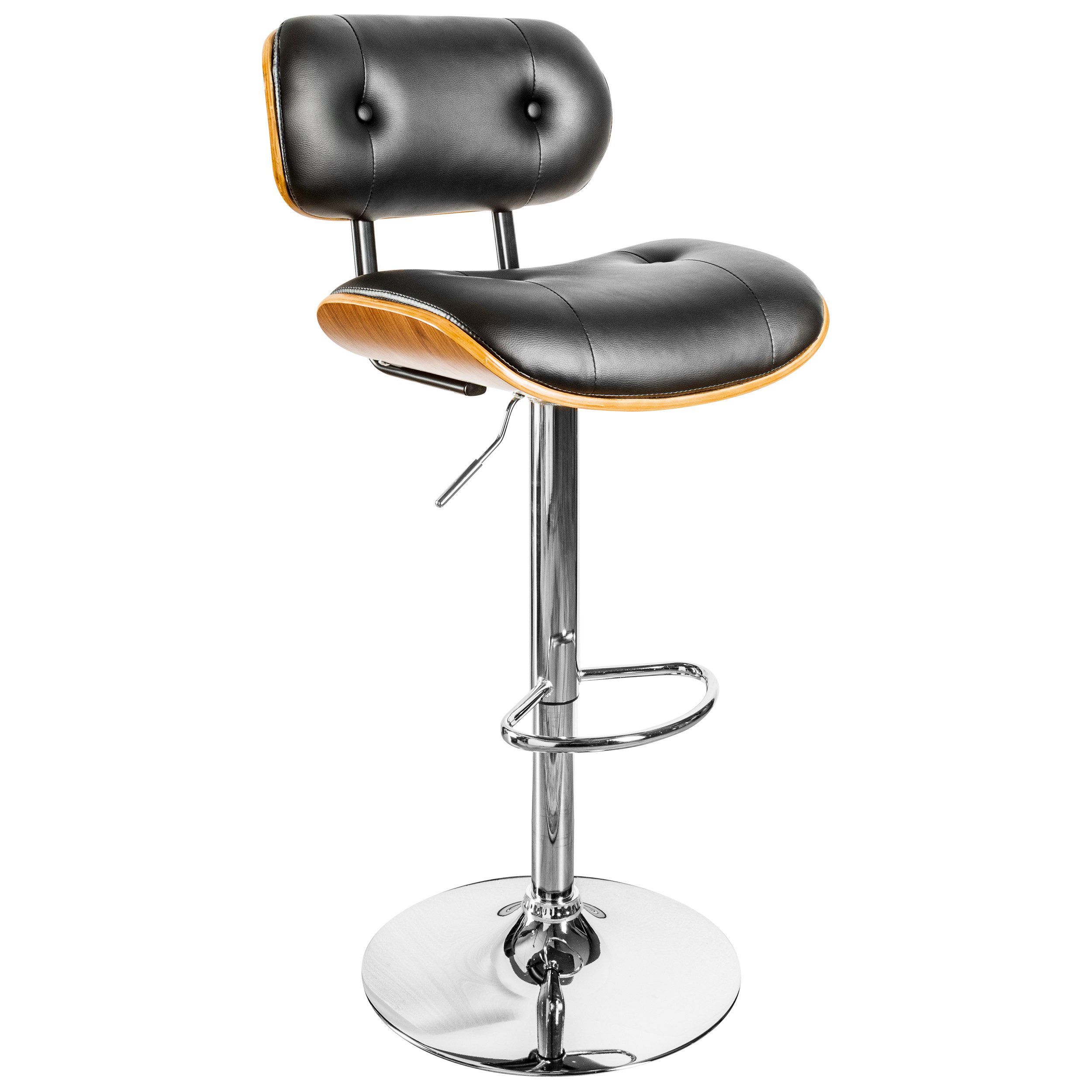 Ein toller Kontrast zu den schwarzen Sitzpolstern bietet die Sitz- und Rückenschale. Diese ist komplett aus hochwertigem Walnuss-Echtholzfurnier gefertigt. Das satte Braun und die aufregende Maserung des Furniers sind ein wahrer Blickfang und unterstreichen den Retro-Look der Stühle hervorragend. Für ein individuelles Sitzvergnügen lassen sich die Barstühle zudem in der Höhe verstellen und bieten dank Fußablage zusätzlichen Sitzkomfort.