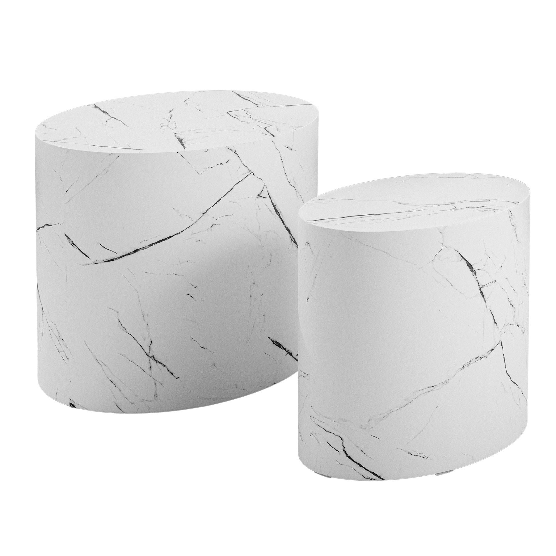 Das 2er Set Beistelltische begeistert mit seiner edlen weißen Marmor-Optik und den harmonisch ovalen Formen. Die geschwungenen Silhouetten verleihen den Tischen eine zeitlose Eleganz, die sich mühelos in verschiedenste Wohnstile einfügt. Ob als stilvolle Ablagefläche im Wohnzimmer, praktische Ergänzung im Schlafzimmer oder Eyecatcher im Flur – dieses Set kombiniert Ästhetik und Funktionalität auf beeindruckende Weise. Hol Dir jetzt dieses moderne Duo und verleihe Deinem Zuhause das gewisse Etwas!