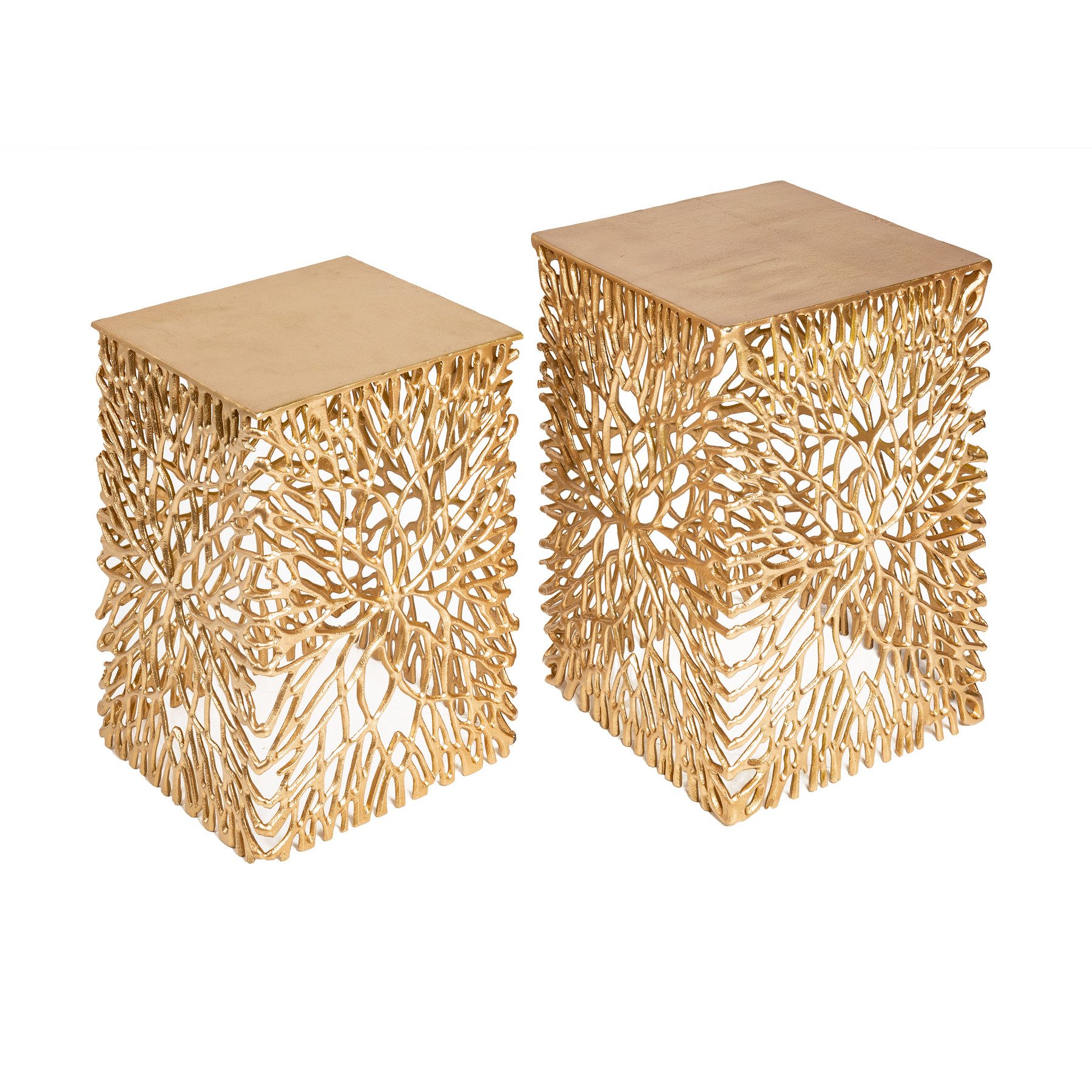Dieses Schmuckstück wird zu einem wahren Eyecatcher in Deinem Ambiente. Die unterschiedlich großen Beistelltische im 2er Set bestehen komplett aus einer Oberfläche, die an die feine Struktur eines Blattes erinnert. Die unzähligen, feinen Verästelungen ergeben einen Korpus, der durch die vielen Aussparungen leicht und filigran wirkt. Jeder Beistelltisch wird in Handarbeit zusammengefügt und ist ein wunderschönes Unikat, das ein elegantes Flair und einen Hauch von Extravaganz versprüht.