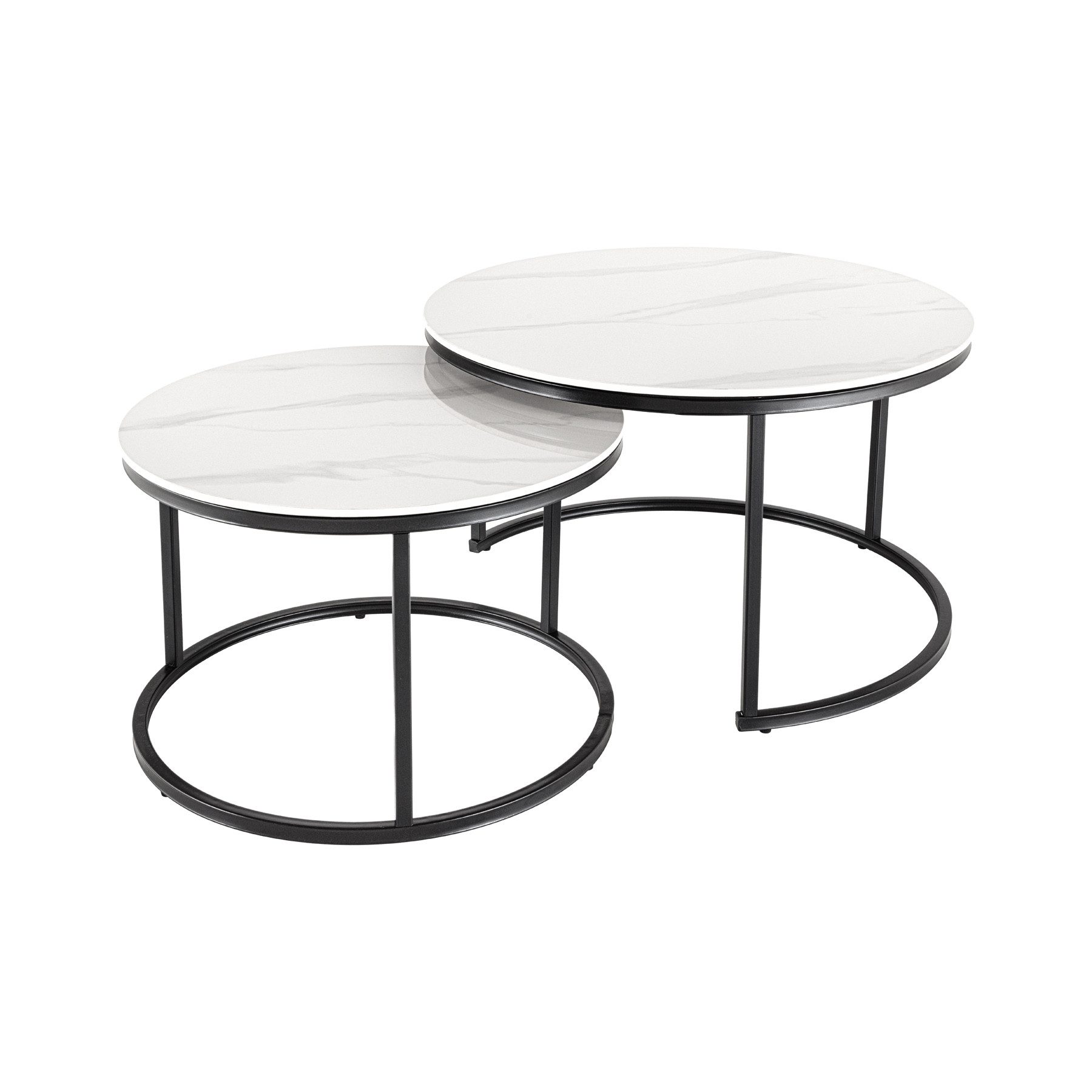 Eleganz trifft auf Funktion: Die Couchtische im Set überzeugen mit hochwertiger Verarbeitung aus weißer Marmoroptik und schwarzem Metallgestell. Mit zeitlosem Design und der edlen Ausstrahlung fügen sich die runden Couchtische perfekt in jedes moderne Wohnzimmer ein. Hochwertige Materialien: Die runden Tischplatten bestehen aus Keramik, die eine täuschend echte Marmoroptik aufweist. Das schwarze Gestell sorgt für einen stabilen Stand und unterstreichen den modernen Look der Couchtische. Das Gestell ist pulverbeschichtet und strahlt in mattem Finish. Erlebe gesellige Stunden mit Deinen neuen Keramik Couchtischen!