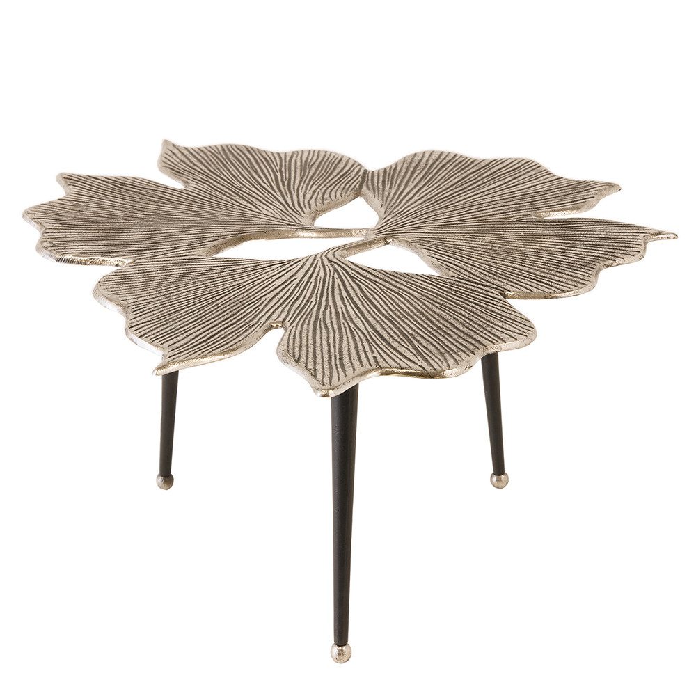 Dieser filigrane Tisch verzaubert auf den ersten Blick! Die Tischplatte in Silber ist einem Ginkgo-Blatt nachempfunden. Die gewellten Ränder, die charakteristischen Einkerbungen und die Blattadern auf der Oberseite unterstreichen den authentischen Look des Blattes perfekt. Getragen wird die einzigartige Tischplatte von einem geschwungenen Gestell mit rundem Fuß, welcher einen stabilen Stand auf jedem Untergrund garantiert.