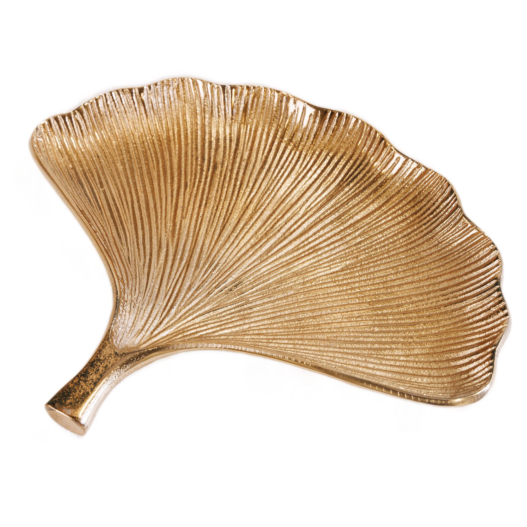Freue Dich jetzt auf eine besonders stilvolle Tischdekoration! Das goldene Schalen 3er Set GINKGO ist in der Form filigraner Blätter designt und wird sofort zum Highlight auf jedem Esstisch, Sideboard oder Wandregal. Die Schalen eignen sich hervorragend, um Deinen Besuchern und Gästen z.B. Pralinen oder Gebäck anzubieten – aber auch als Schmuckaufbewahrung ist das dreiteilige Set sehr beliebt.