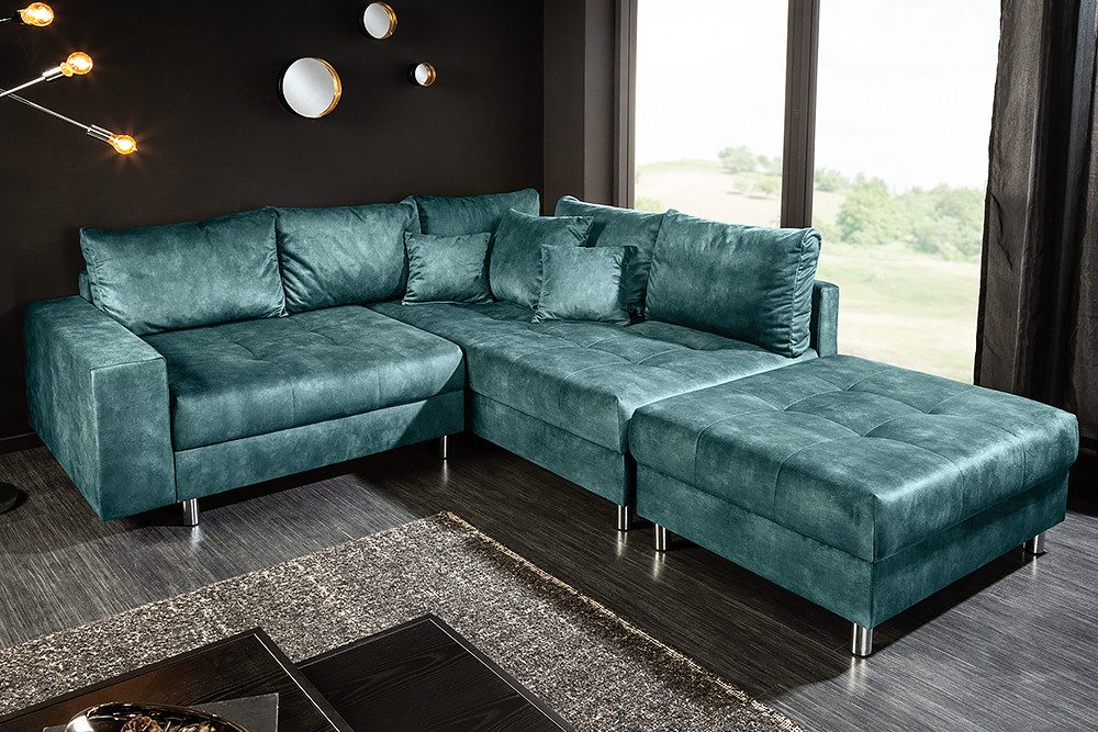 Lieferumfang | 1x Ecksofa, 1x Hocker, 8x Kissen |