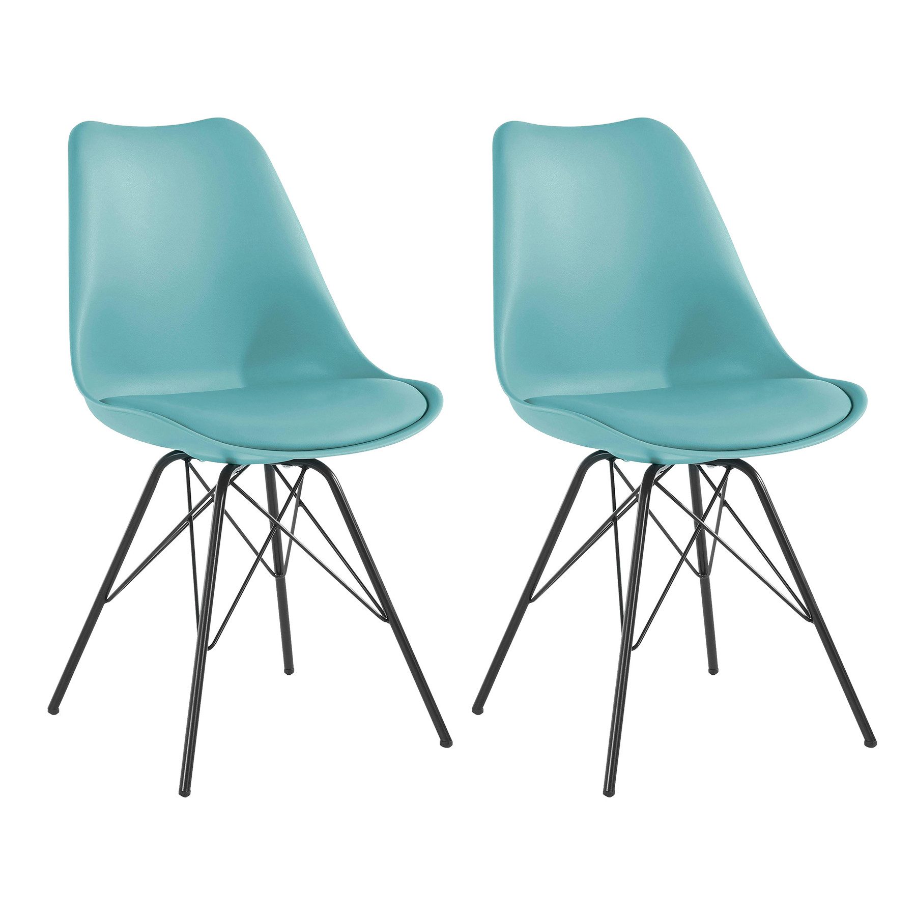 Bringe nordisches Flair in Dein Zuhause mit dem 2er-Set Retro-Stühle SCANDINAVIA MEISTERSTÜCK in frischem Mintgrün. Die organisch geformten Sitzschalen mit komfortablen Sitzkissen aus hochwertigem Kunstleder sorgen nicht nur für zeitlosen Stil, sondern auch für hohen Sitzkomfort. Die pulverbeschichteten schwarzen Stahlgestelle bilden einen eleganten Kontrast zu den mintgrünen Sitzflächen und verleihen den Stühlen eine moderne und vielseitige Optik.
