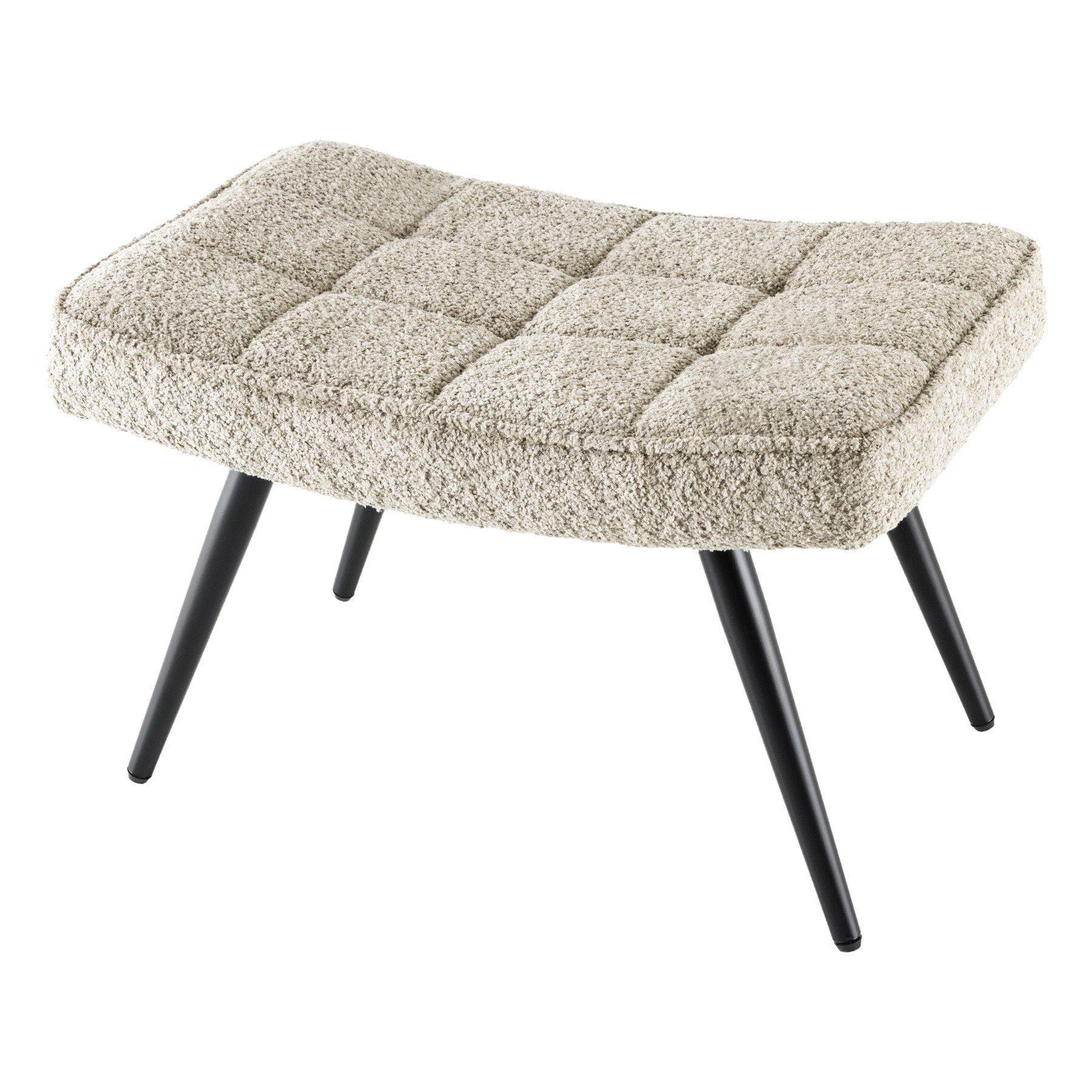 Hier kannst Du es Dir so richtig gemütlich machen! Der bequeme Sitzhocker vereint höchsten Sitzkomfort mit frischem, skandinavischem Design. Die hochwertig gepolsterte Sitzfläche verfügt über eine Ziersteppung. Der Bezugstoff sorgt auch haptisch für die Qualität der Fußablage und bildet einen stimmigen Kontrast zu den Beinen aus schwarzem Metall.