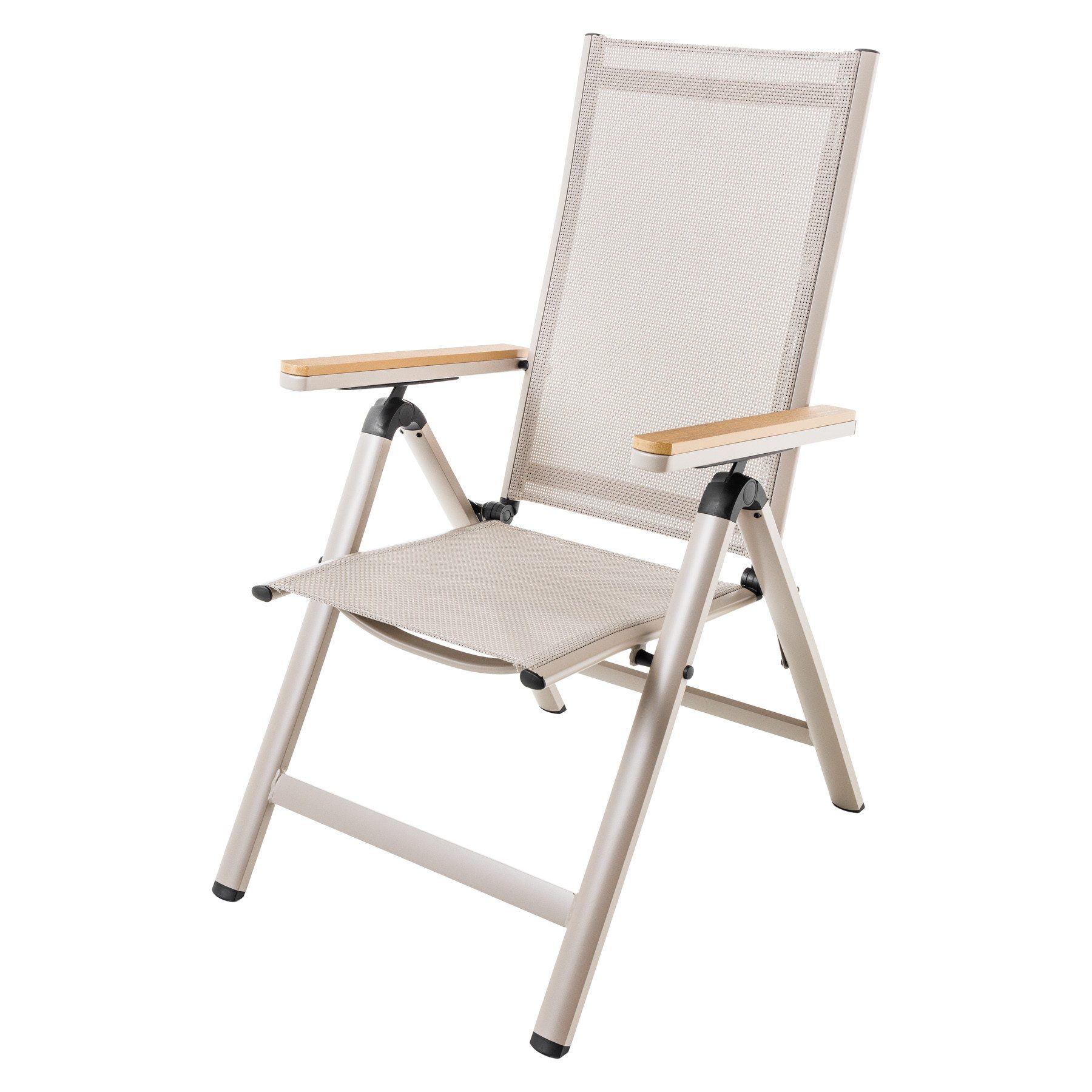 Das Gestell aus Aluminium macht den Stuhl besonders stabil, rostfrei und leicht, während der hochwertige Outdoorstoff in Anthrazit strapazierfähig und wetterfest ist. Die Armlehnen in natürlicher Holzoptik sorgen für ein angenehmes Gefühl beim Auflegen der Arme. Bei Bedarf lässt sich der Hochlehner einfach zusammenklappen und platzsparend verstauen. Ob als stilvolle Ergänzung zu Deinem Gartentisch oder als komfortabler Liegestuhl – der Gartenstuhl DESIGNO überzeugt mit Funktionalität und zeitloser Eleganz. Hol Dir jetzt Deinen neuen Lieblingsplatz für entspannte Stunden im Freien!