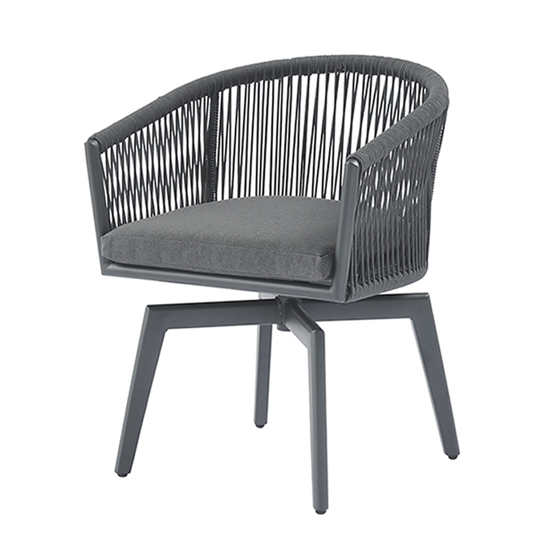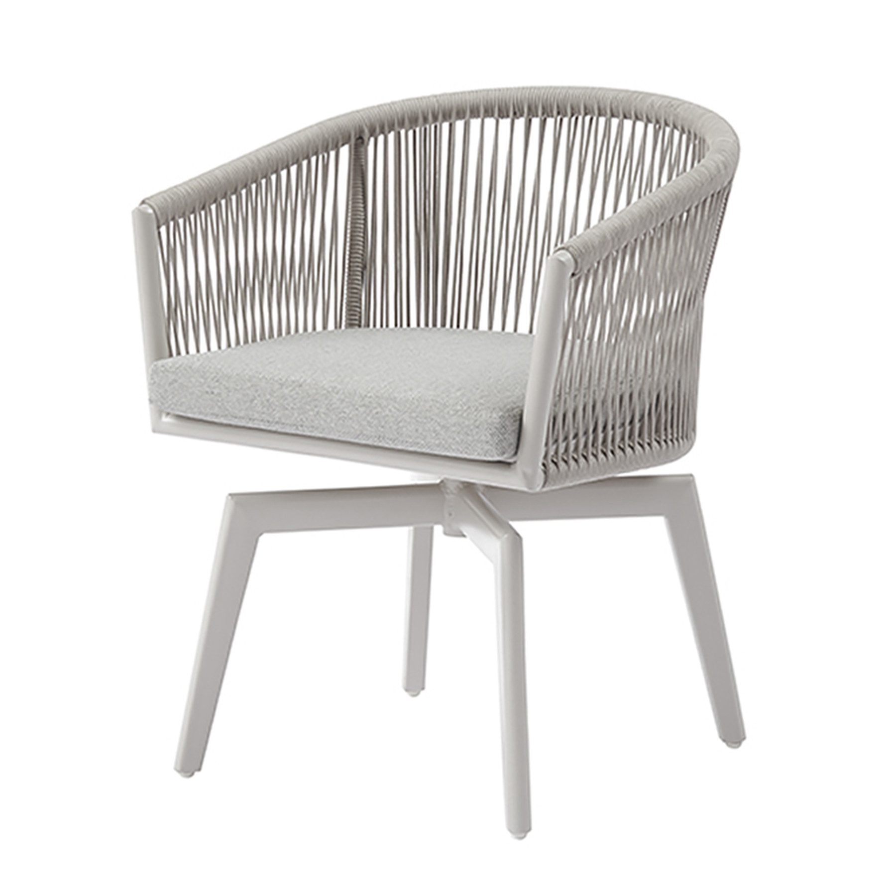 Der Outdoorstuhl ROPE in sanftem Greige vereint klare Formensprache mit einem Hauch Leichtigkeit und lädt zum stilvollen Verweilen ein. Das filigrane Seilgeflecht umhüllt die Sitzschale wie ein sanfter Rahmen und bringt modernes Design mit natürlicher Eleganz in Einklang. Ein besonderes Highlight ist das geschlossene Drehteller-System, das die 360° Drehfunktion nahezu unsichtbar integriert – für sanfte Bewegungen und einen rundum stimmigen Look. So bleibt der Stuhl nicht nur optisch ruhig und elegant, sondern auch technisch langlebig und stabil. Das pulverbeschichtete Aluminiumgestell rundet den hochwertigen Gesamteindruck ab.
