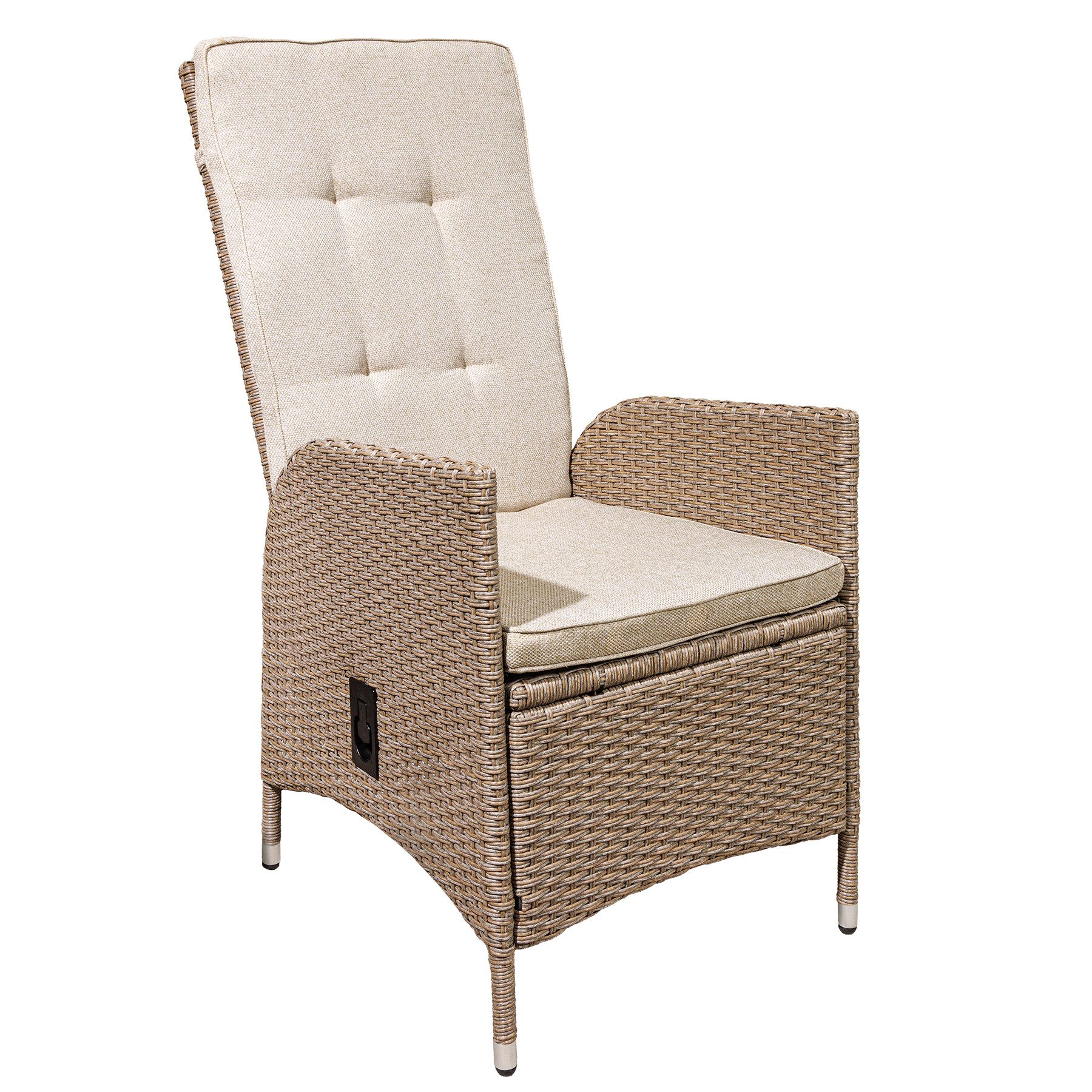 Entdecke den zeitlosen Charme des wetterfesten Gartensessels SYLT und erlebe Komfort und Eleganz im eigenen Garten. Mit seiner stufenlos verstellbaren Rückenlehne ermöglicht dieser Gartensessel aus hochwertigem Polyrattan eine individuelle Anpassung für entspannte Momente unter freiem Himmel. Die inkludierte Sitzauflage bietet zusätzlichen Komfort und lädt zum Verweilen in Deinem Outdoor-Bereich ein. Der ideale Ort, um die Sonnenstrahlen zu genießen oder gemütliche Abende auf Deinem Balkon oder in Deinem Garten zu verbringen.