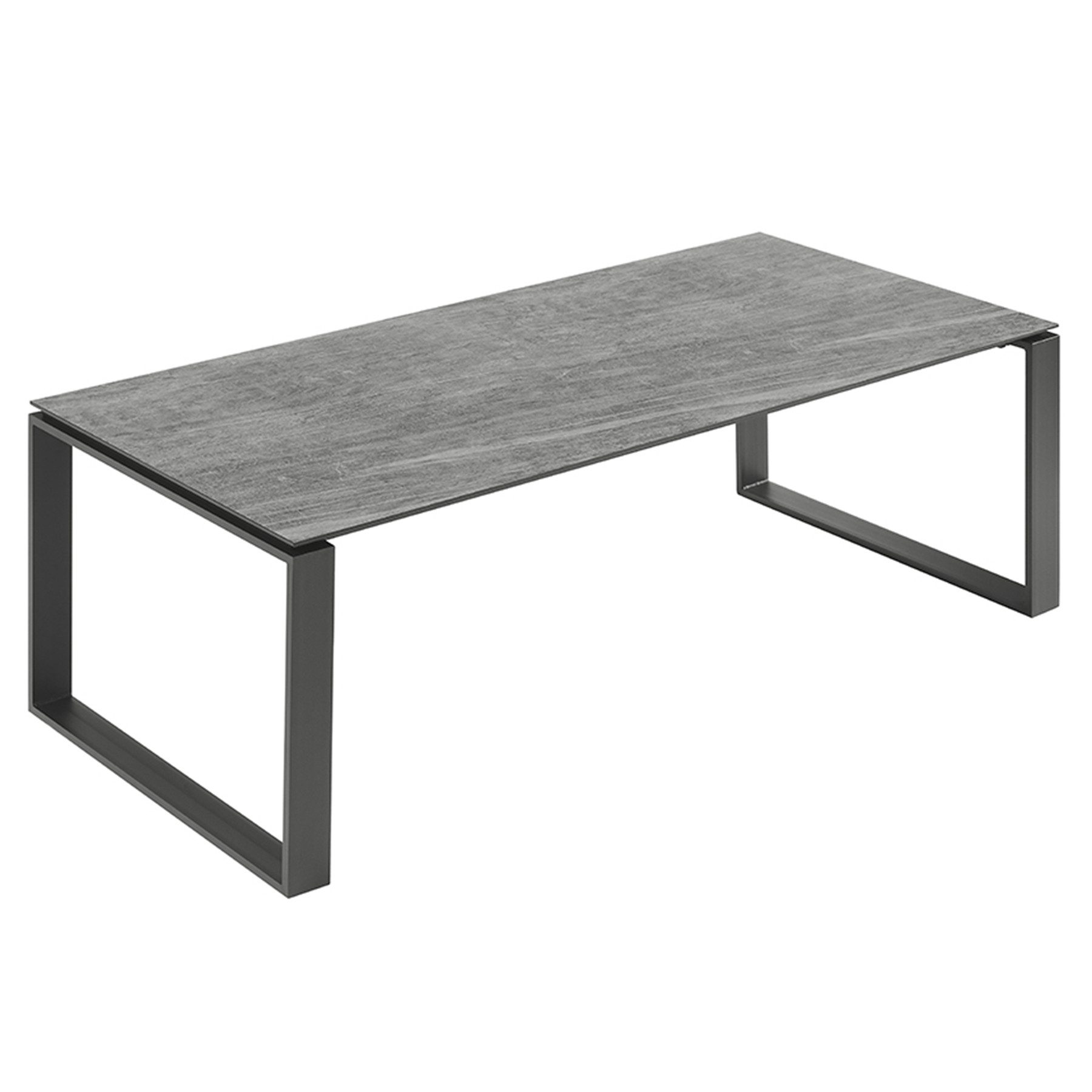 Mit dem Gartentisch FLOATING holst Du Dir stilvolles skandinavisches Design auf Deine Terrasse oder in den Garten. Die edle Tischplatte aus Silikatkeramik in Anthrazit überzeugt nicht nur durch ihre hochwertige Optik, sondern auch durch ihre Widerstandsfähigkeit gegenüber Wetter und Abnutzung. Das pulverbeschichtete Aluminiumgestell in Anthrazit rundet das minimalistische Design ab und sorgt für eine besonders moderne, harmonische Ausstrahlung.