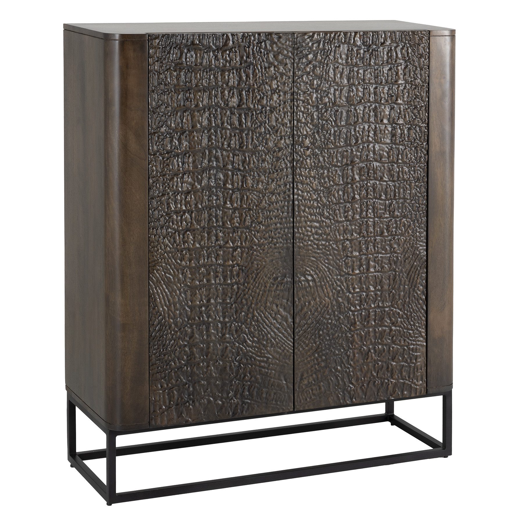 Das Highboard aus massivem Mangoholz mit Metallgestell ist ein echter Hingucker in jedem Zuhause. Die aufwändig gestaltete 3D-Front ist das Highlight des Schrankes: täuschend echt wirkt die Oberflächentextur in Krokodiloptik. Mit seinen sechs Fächern bietet es ausreichend Platz für Geschirr, Bücher, Dekoration und vieles mehr. Die elegante Optik des Highboards passt perfekt zu modernen Einrichtungsstilen!
