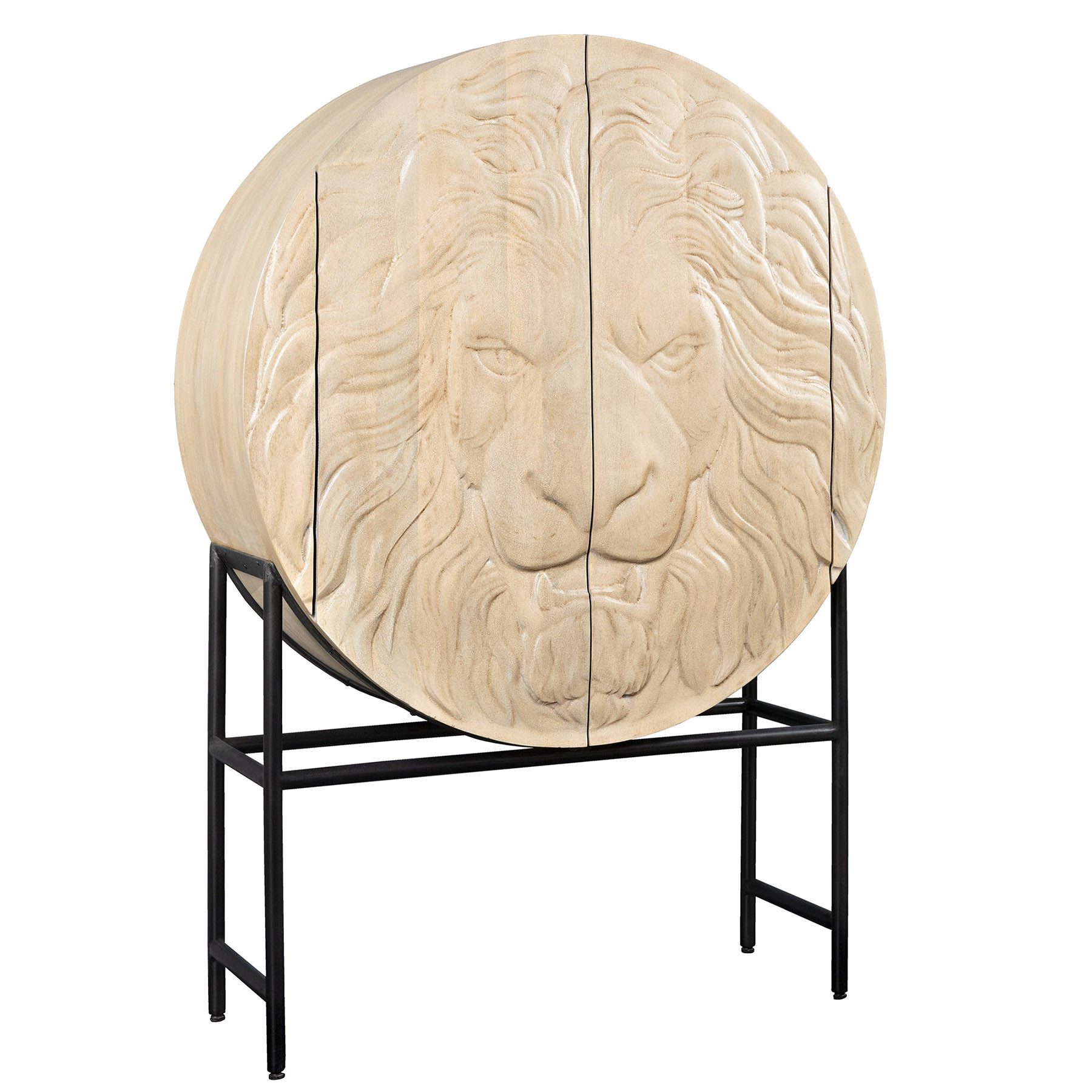 Unser rundes Highboard LION ist genau das Richtige für Dich! Mit seiner edlen weißen Oberfläche und der kunstvollen 3D-Optik setzt es ein stilvolles Statement in Deinem Zuhause. Die dickere Materialstärke der Türen verstärkt die raffinierten 3D-Effekte, die bei jeder Betrachtung aufs Neue faszinieren. Das schwarze, pulverbeschichtete Metallgestell sorgt für eine stabile Basis und verleiht dem Möbelstück einen luxuriösen Touch. Hergestellt aus hochwertigem Mangoholz, wird das Highboard zu einem langlebigen und beeindruckenden Blickfang.