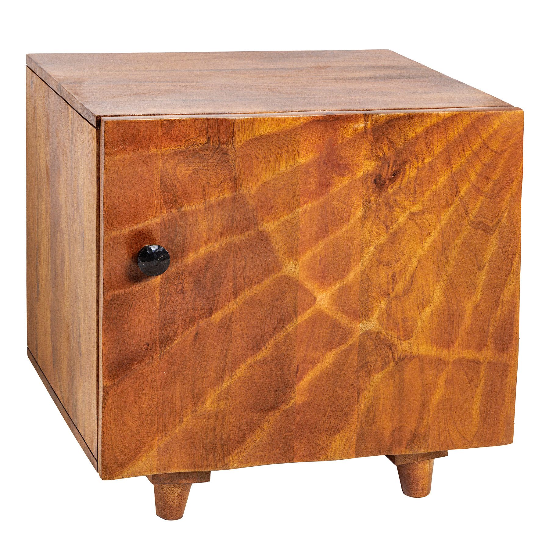 Aber nicht nur die Optik des Nachtschrankes begeistert vom ersten Moment an. Auch das Innere ist vielversprechend. Hinter der aufwändig gestalteten Tür befinden sich nämlich zwei geräumige Fächer in naturbelassener Mangoholz-Optik. Viel Platz also, um Bücher, das Ladekabel und Co. sichtgeschützt zu verstauen. Unser Tipp: Auch als Beistelltisch im Wohnzimmer macht dieses Design Highlight eine tolle Figur!