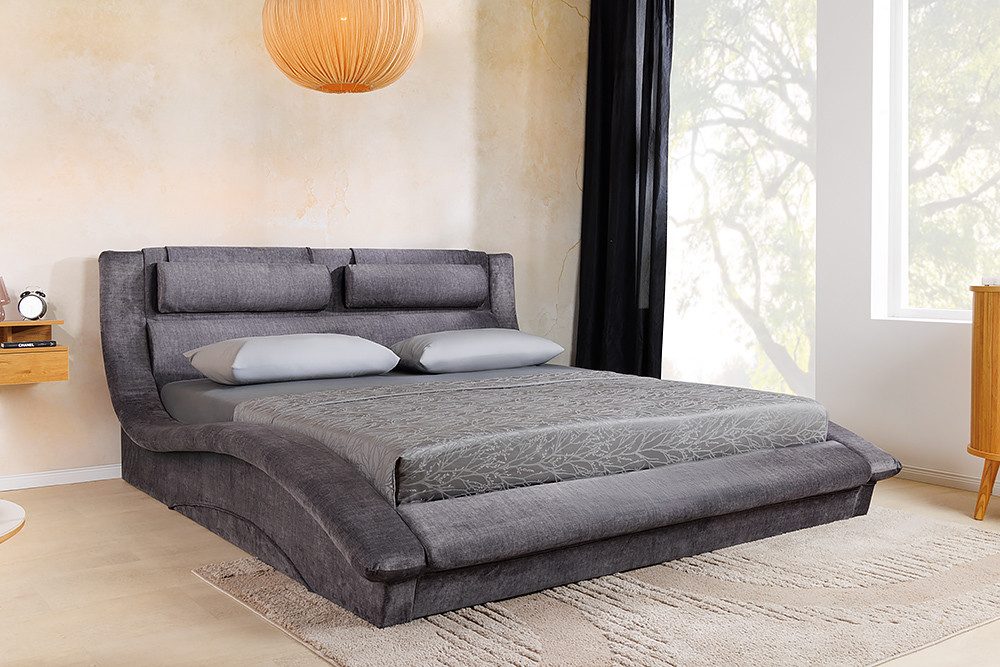 Der geschwungene Bettrahmen verleiht dem Bett eine außergewöhnliche Eleganz und sorgt für besten Liegekomfort. Zusätzlich bietet das Bett praktischen Stauraum, ideal für Bettwäsche oder andere Gegenstände. Die stabile Konstruktion garantiert eine langlebige Basis für erholsame Nächte.