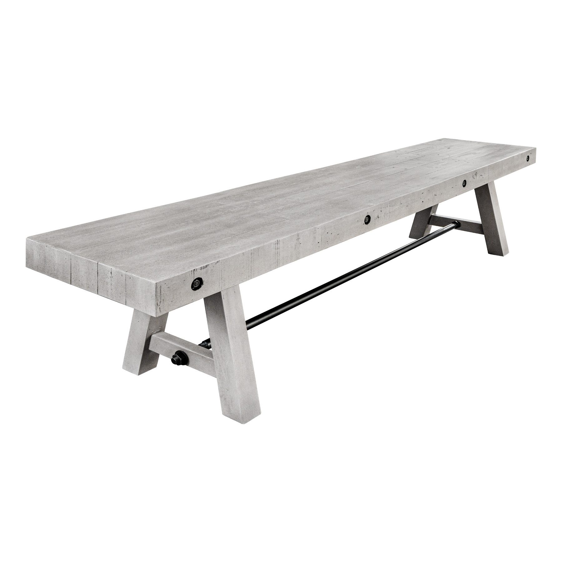 Mit dieser Bank erhältst Du ein Unikat, das mit der groben Struktur der Sitzfläche besonders authentisch und natürlich wirkt. Die Sitzplatte aus Pinienholz wurde in hochwertig verarbeiteter Bohlenoptik mit einem Finish in Grau designt. Dadurch wirken die leicht abgerundeten Bohlen gemeinsam als einzigartige Bank mit großartig haptischen Eigenschaften und die einzigartige Struktur des Holzes kommt besonders zur Geltung. Zusammen mit der Eisenstange und den dunklen Zier-Schrauben im Holz entsteht so ein kantiges Industrial Design, das in jedem Esszimmer zu einem Eyecatcher wird.
