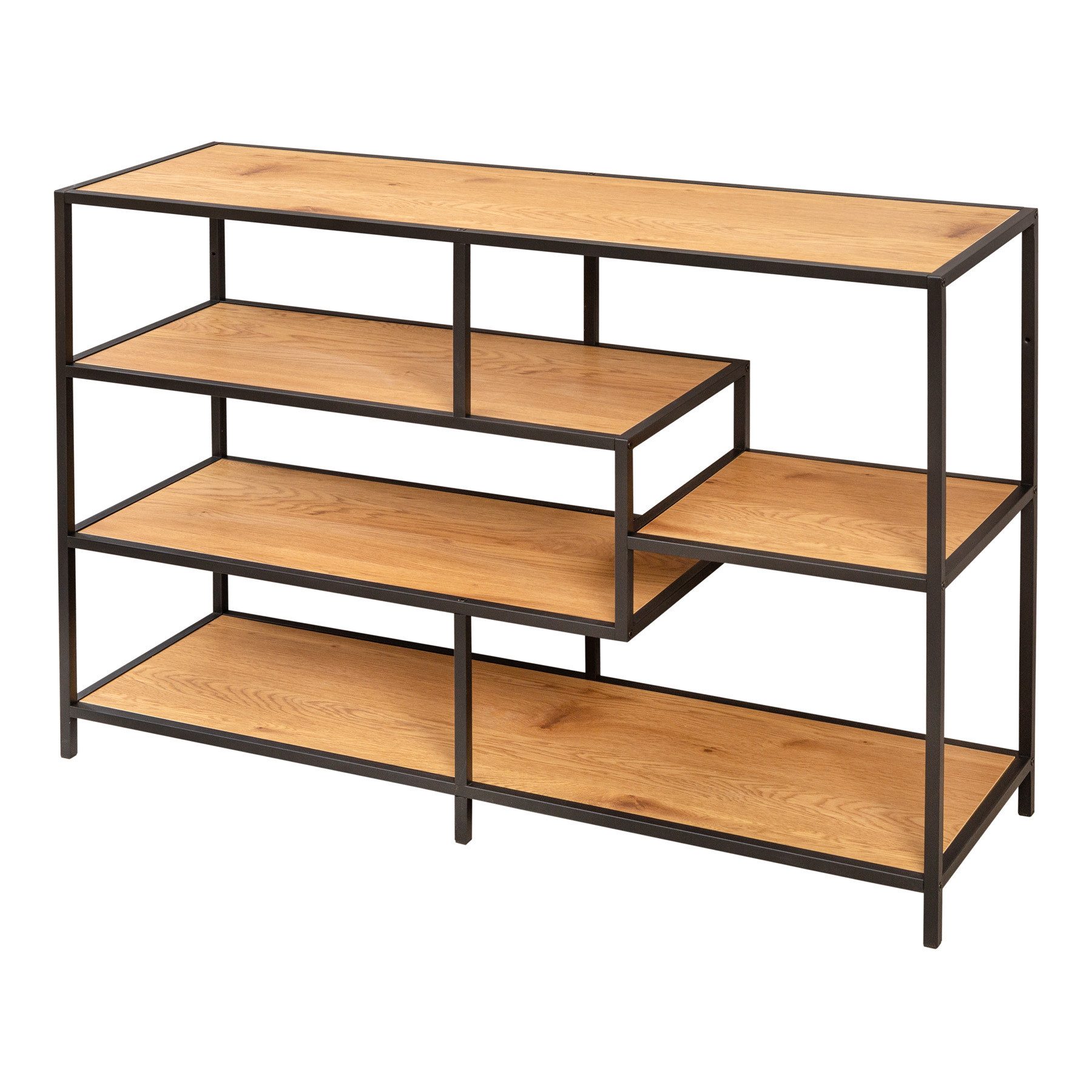 Die Böden des Regals sind in einem asymmetrischen Design angeordnet. Dies verleiht dem stabilen Regal seinen ganz besonderen Charme. Ganz gleich ob im Wohnzimmer, im Schlafzimmer oder in Deinem Arbeitszimmer für alle wichtigen Unterlagen und Ordne: Das zeitlose Metallregal macht immer eine tolle Figur und wird zu einer Bereicherung Deiner Einrichtung – erlebe es selbst!