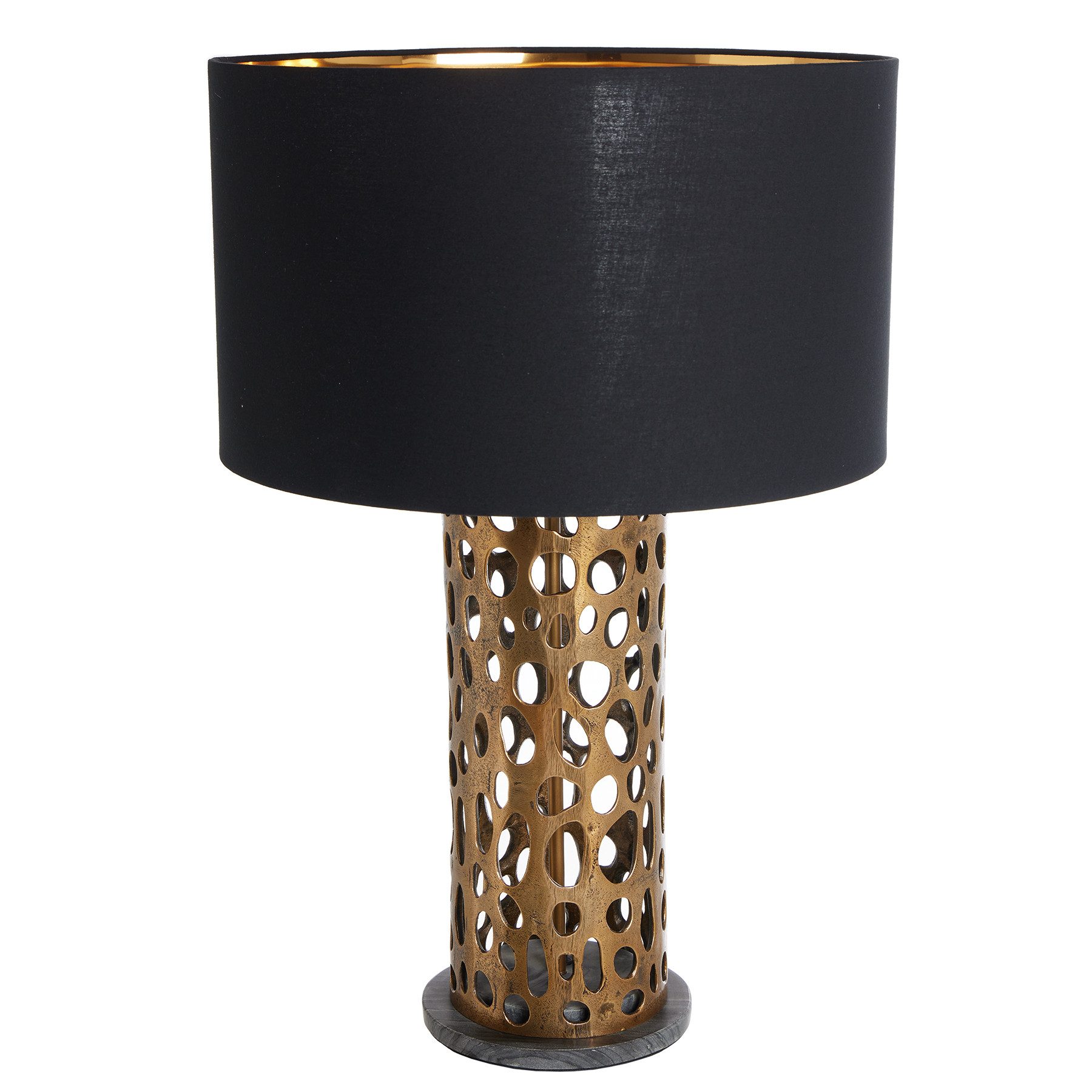 Du bist auf der Suche nach einer dekorativen Lampe für Dein glamouröses Zuhause? Unsere stylische Tischlampe ABSTRACT LEAF bringt gemütliches Licht in Deine vier Wände! Der große, runde Stoffschirm in Schwarz ruht auf einem dekorativen Lampengestell, das ein Element aus Metall mit wabenartigen Ausstanzungen mit einem massiven Lampenfuß aus Marmor vereint.