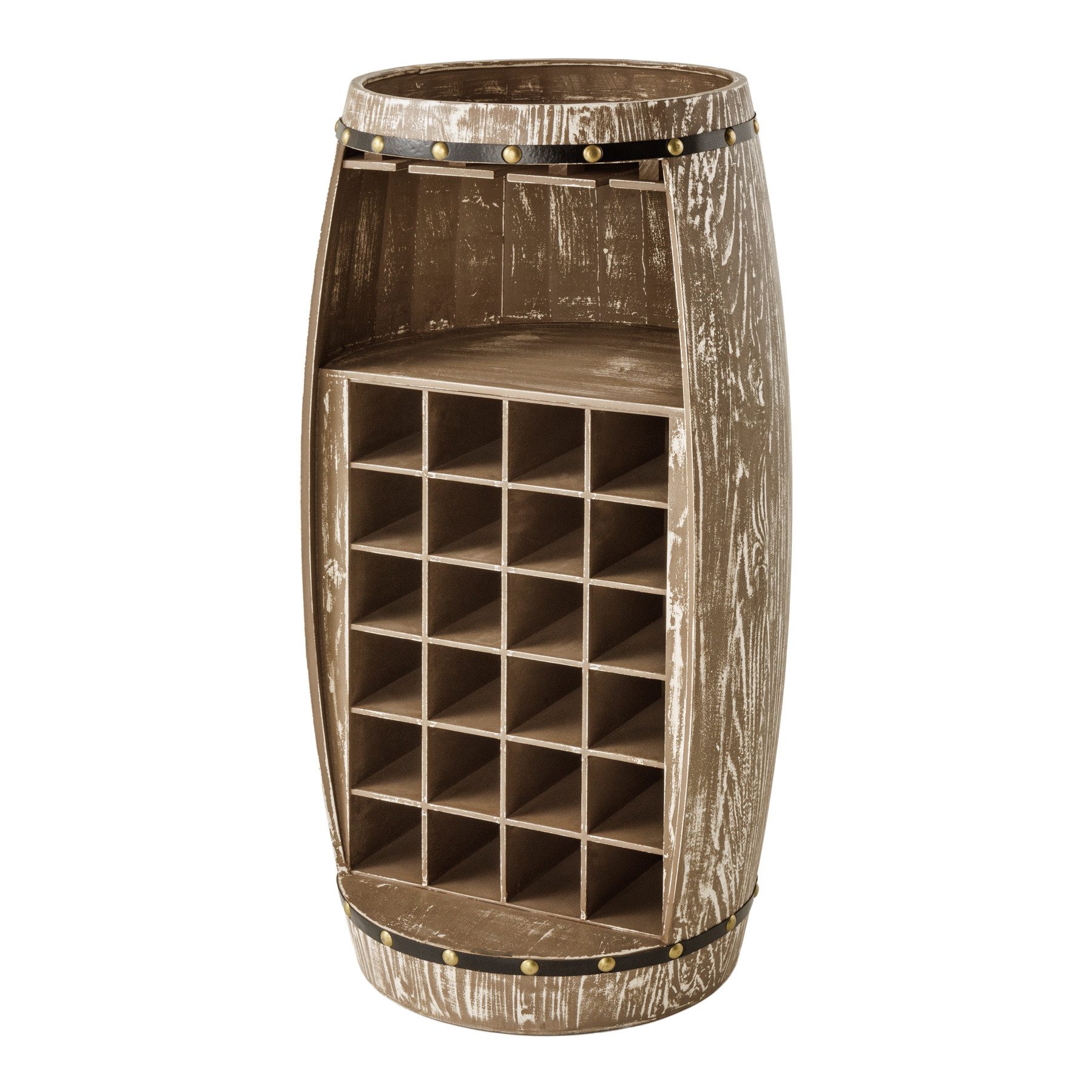 Der Korpus des Fasses ist aus hochwertigem Pinienholz gefertigt. Die Bohlen sind mit einer authentischen Oberfläche im Shabby Chic Stil designt, sodass das Fass direkt eine urige Gemütlichkeit ausstrahlt. Zusätzlich verläuft oben und unten ein Zierleiste mit goldenen Nieten um das gesamte Fass herum, welche der Optik einen zusätzlichen Reiz verleiht.