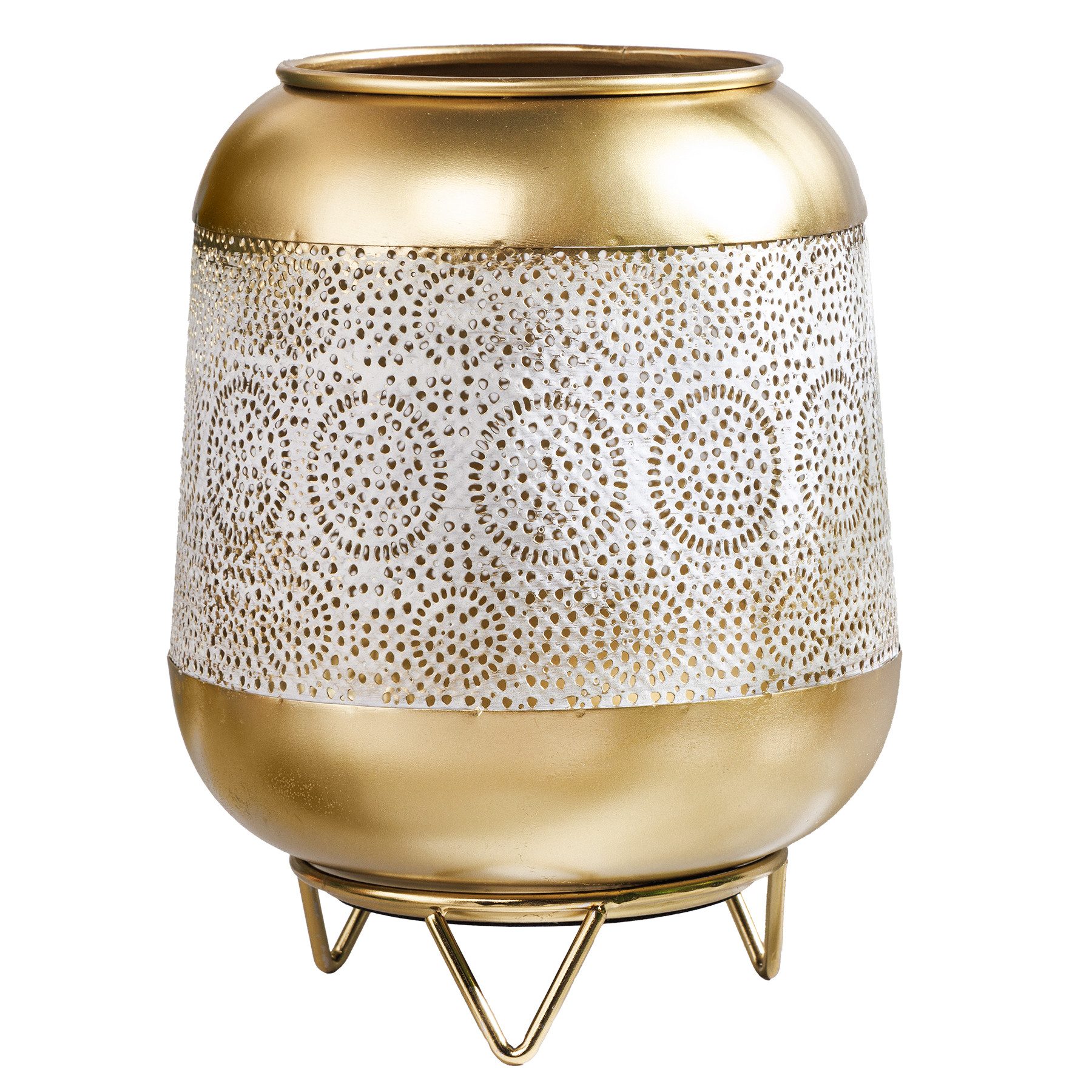 Durch ihren orientalischen Look wird die Deko-Laterne zum eleganten Eyecatcher in jedem Raum. Unser Interior-Tipp: Kombiniere das Deko-Windlicht mit weiteren goldenen Wohnaccessoires und kreiere ein stimmiges Wohnkonzept in Deinem Zuhause! Natürlich kann die Laterne auch perfekt als Vase für Trockenblumen genutzt werden.