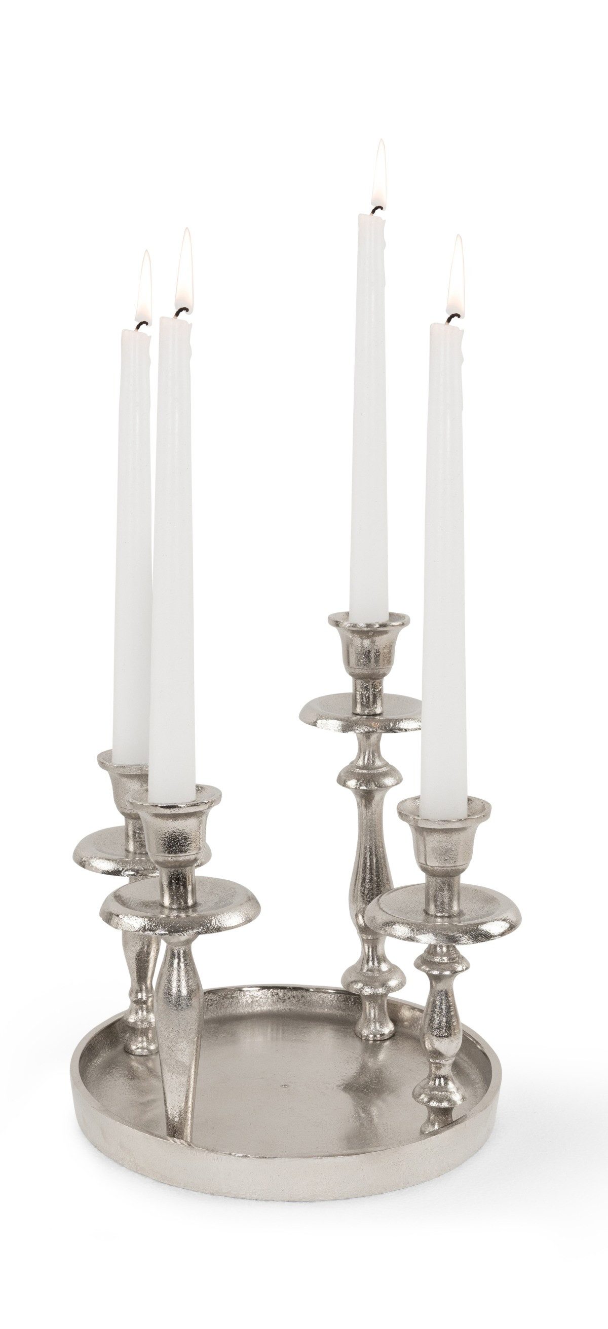Das runde Aluminium-Tablett von Riffelmacher mit vier integrierten Kerzenhaltern vereint modernes Design mit festlicher Eleganz ideal für stilvolle Advents- und Weihnachtsdekorationen. In edlem Silber gehalten, wirkt es gleichzeitig schlicht und festlich. Mit einem Durchmesser von 21?cm bietet das Tablett ausreichend Platz für vier Stumpenkerzen (nicht enthalten) und lässt sich ganz nach Geschmack mit Zweigen, Kugeln oder kleinen Figuren ergänzen. Die stabile Aluminiumkonstruktion macht das Tablett nicht nur langlebig, sondern auch pflegeleicht. Die glänzende Oberfläche reflektiert das Kerzenlicht stimmungsvoll und schafft eine warme, einladende Atmosphäre ob als Adventskranz-Ersatz oder als ganzjähriger Hingucker auf dem Tisch, Sideboard oder Fensterbrett. Die vier erhöhten Kerzenhalter sind sicher verschweißt und bieten stabilen Halt für handelsübliche Kerzen. Durch sein kompaktes Design eignet sich das Tablett auch für kleinere Räume oder als stilvolle Tischmitte im Büro, Café oder zu Hause. Dank der neutralen Farbgebung lässt sich die Deko jedes Jahr neu interpretieren klassisch, skandinavisch oder minimalistisch.