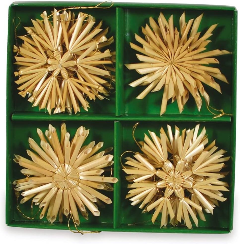 Mit den naturfarbenen Strohsternen von Riffelmacher verleihst du deinem Weihnachtsbaum eine klassische, warme Ausstrahlung. Das 14teilige Set enthält filigran gearbeitete Sterne in der Размер 6cm, die mit einem feinen goldenen Faden zum Aufhängen versehen sind. So lassen sich die Sterne direkt und mühelos am Baum oder an Tannenzweigen anbringen. Die Kombination aus naturbelassenem Stroh und dem schimmernden Goldfaden sorgt für ein harmonisches Gleichgewicht zwischen traditioneller Natürlichkeit und einem Hauch von Eleganz. Jeder Stern ist individuell gefertigt und bringt dadurch eine persönliche Note in dein weihnachtliches Ambiente. Ideal auch für Fensterdekorationen, Adventskränze oder als dekoratives Highlight an Geschenken. Die Strohsterne sind leicht, stabil und wiederverwendbar - perfekt für alle, die Wert auf nachhaltige, authentische Weihnachtsdekoration legen. Ob im rustikalen Landhausstil oder als Kontrast in modernen Interieurs - diese Sterne passen einfach immer. Ein liebevolles Detail für dein Zuhause oder als Geschenkidee für Deko-Liebhaber:innen.
